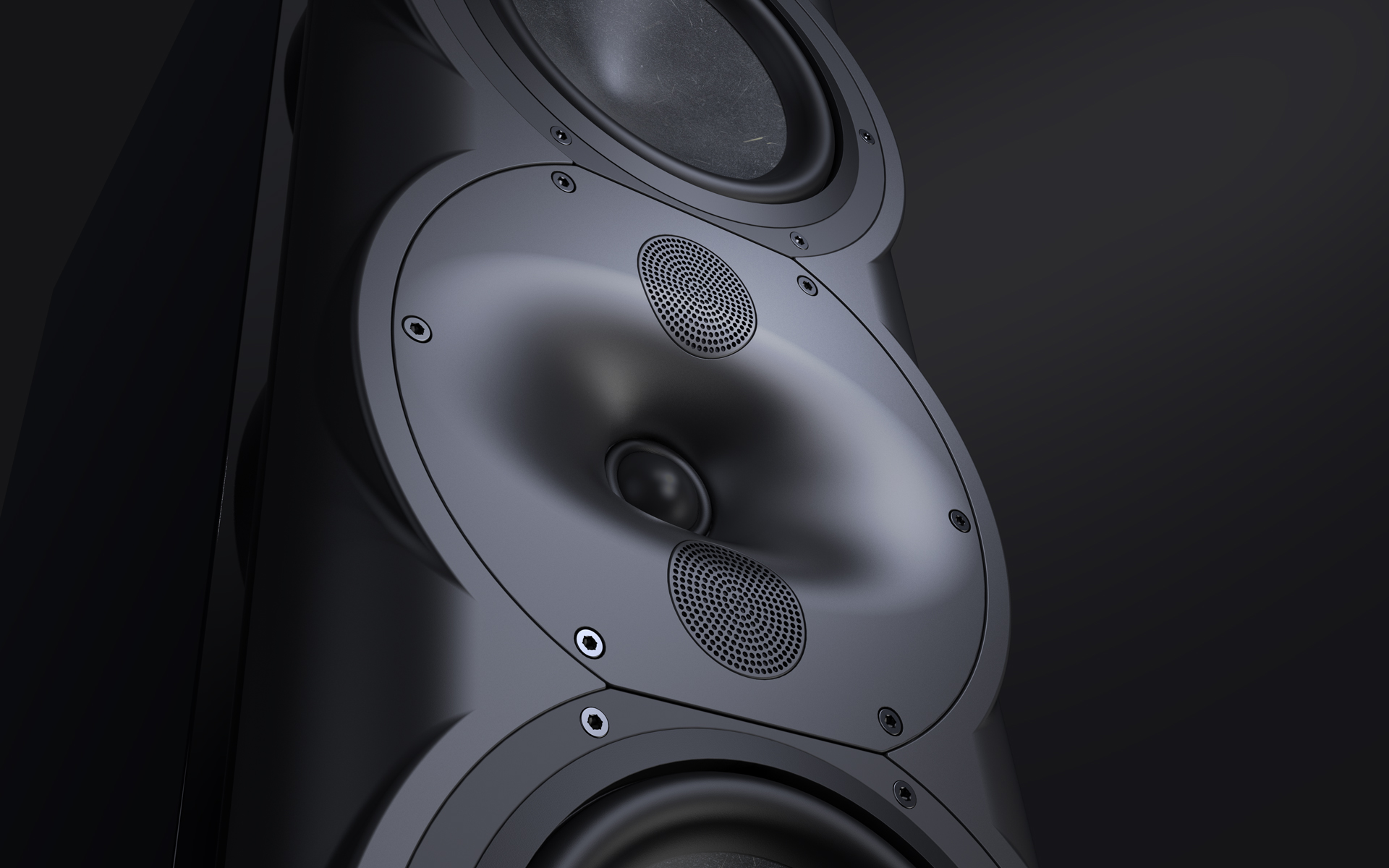 R5t落地喇叭採用3音路設計,由3個絲質半球單體負責高音與中音頻段,2個165mm單體負責低音頻段。DPC-Array技術目的是有效控制高音與中音單體的指向性,主要控制向上與向下聲波,減少因反射帶來的困擾。低音單體則搭配朝底部的低音反射孔設計,可以透過塞吸音綿來選擇開放式或封閉式的運用,官方也給出兩種不同方式的詳細數據表現。