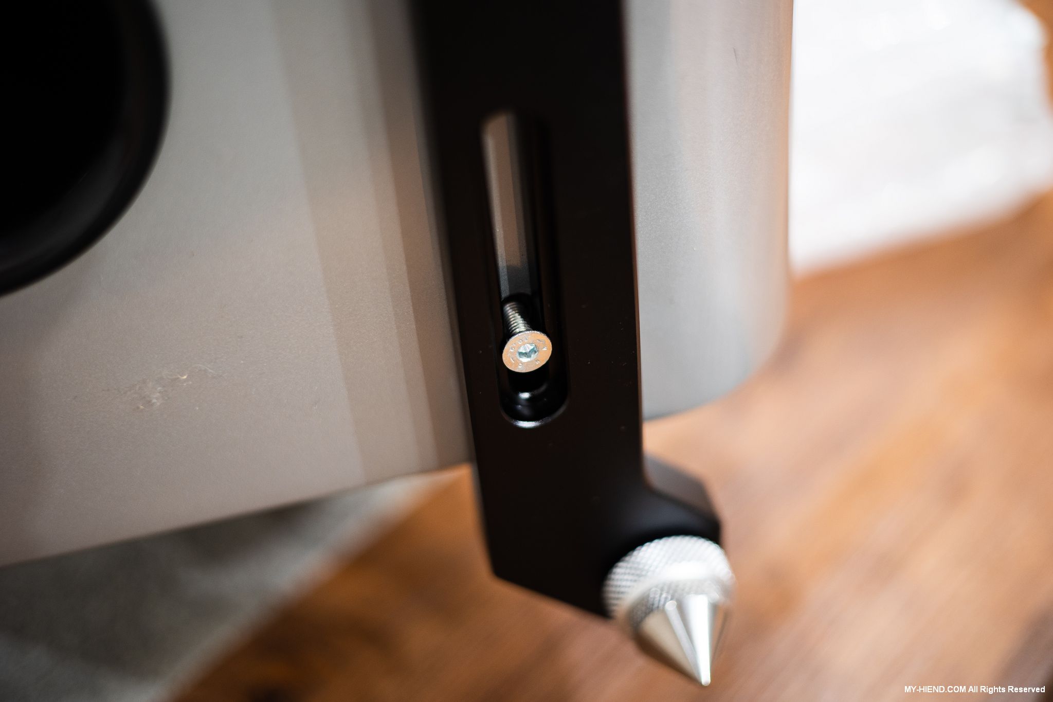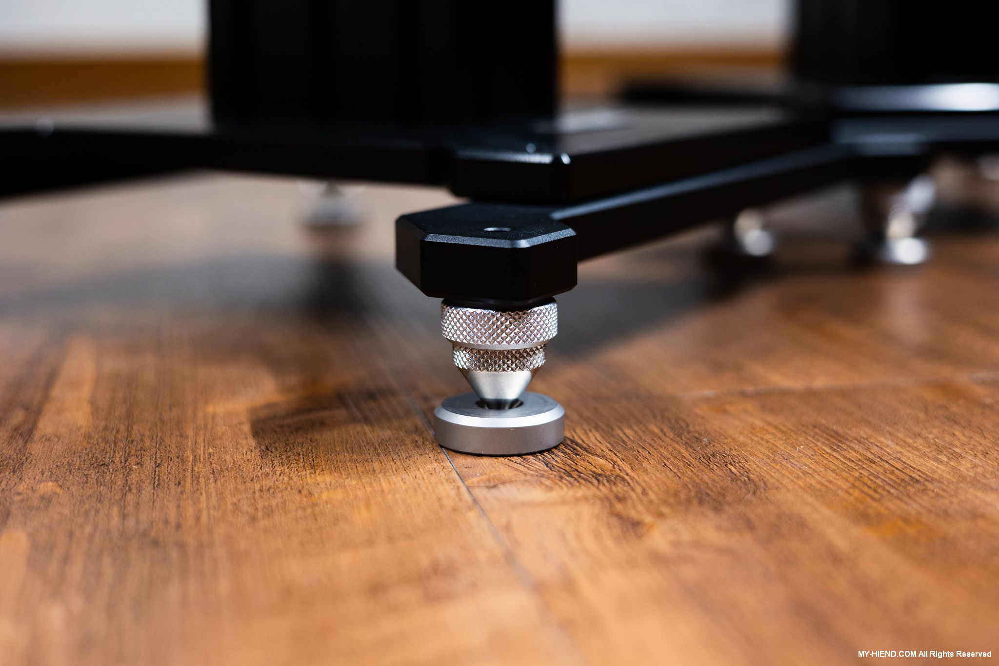 完成後看起來相當搭配,角錐高度調整也是很容易的。這樣的喇叭底座加角錐對聲音的影響是巨大的,提供喇叭穩固堅實的座落在地板上,減少不必要的震動。
