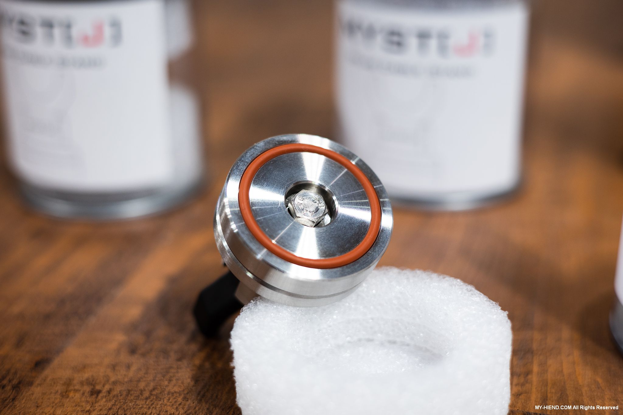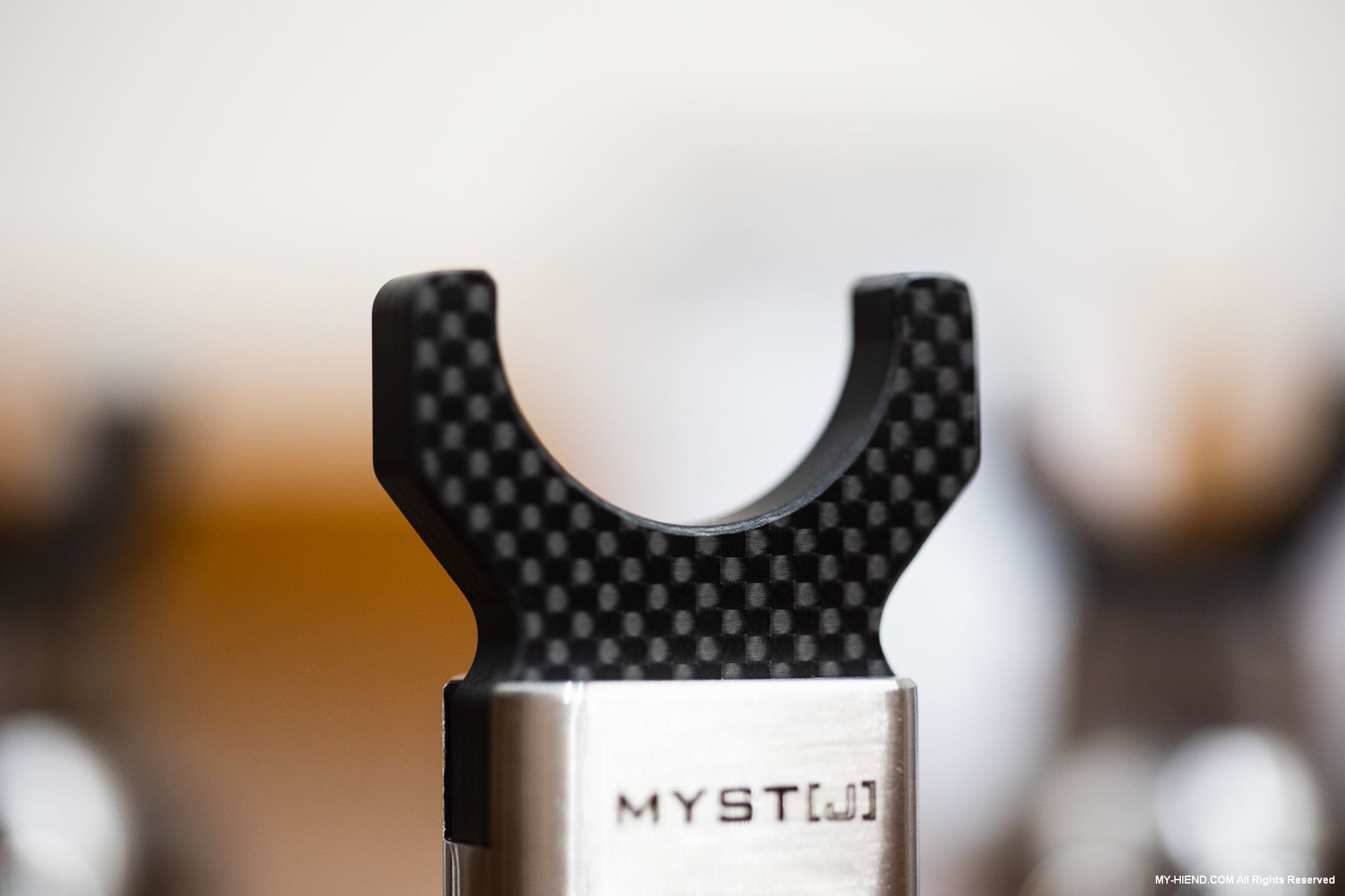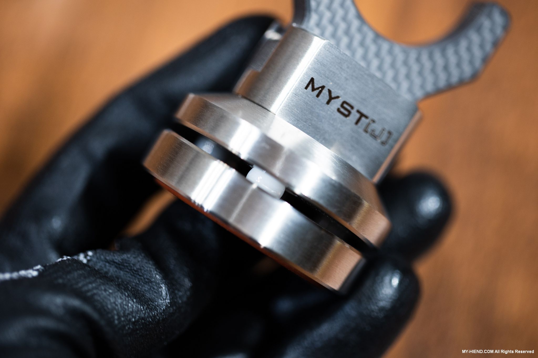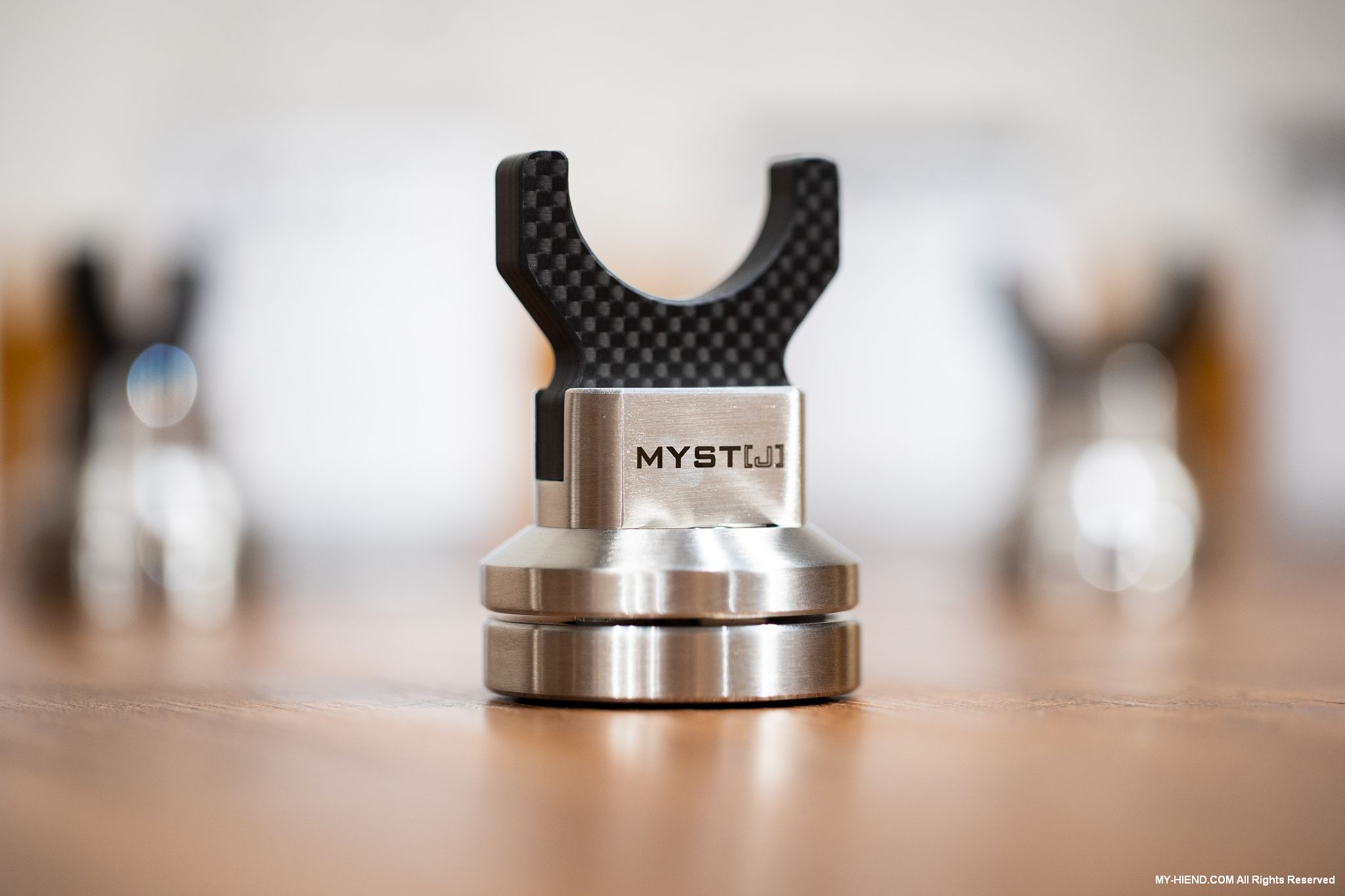 最後一項產品是架線器,很多品牌都已經有類似的產品,MYSTJ架線器使用鋁合金切削製作底座,與線材接觸的部分為碳纖維板,高度不可調,擺放時稍留空間即可。設計上是讓碳纖維板接觸線身,透過架線器底部的橡膠材質與中央的陶瓷珠達到減震效果。