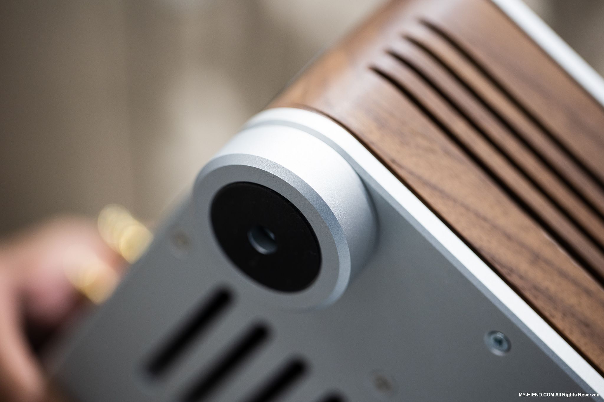 簡潔俐落的曲線,左方旋鈕為音量控制,右方旋鈕為輸入來源選擇