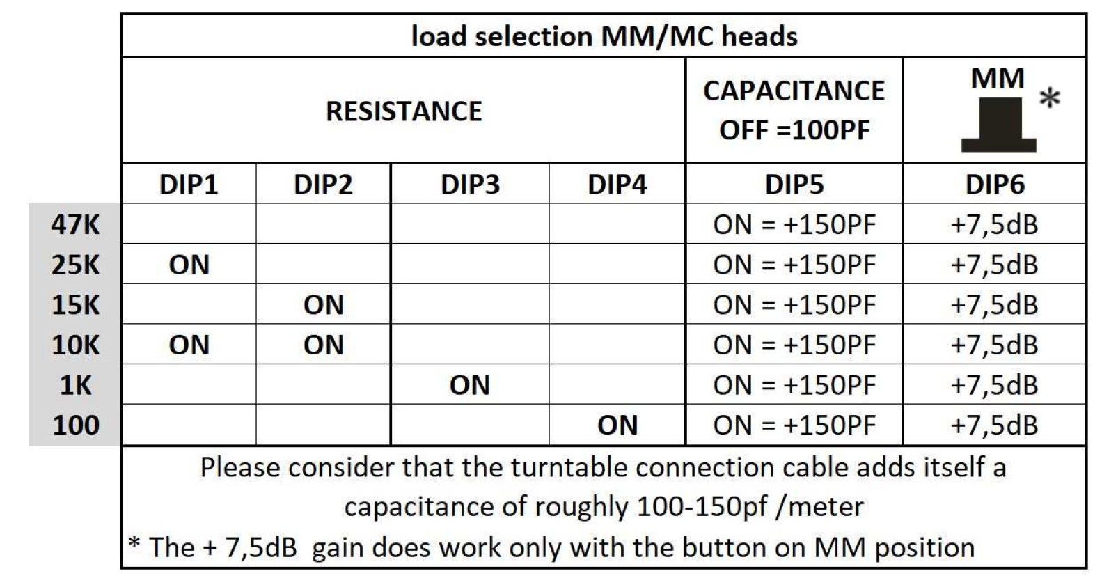 雖然我們沒有試聽唱放部份,不過還是放上唱放的設定給大家參考,大部份的MM唱頭是所有DIP設定在OFF,MC唱頭的話DIP3或DIP4及DIP6需要ON。