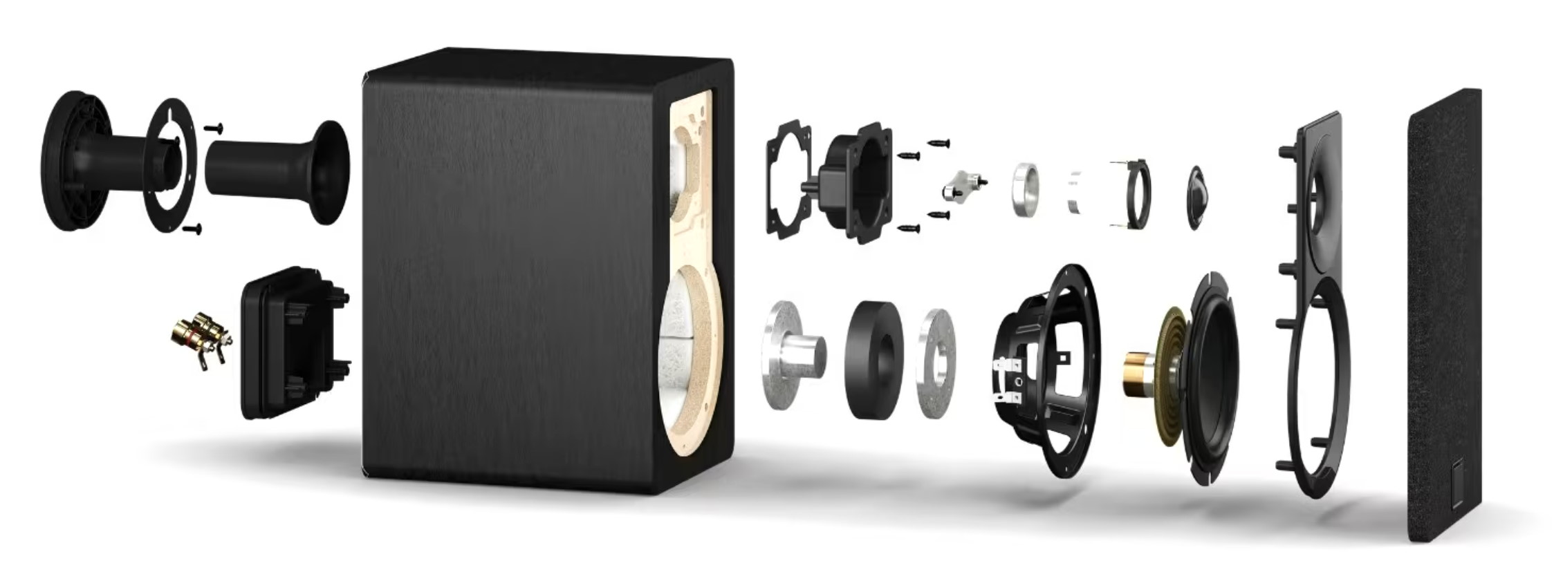KUPID的核心是一個4.5吋低損耗紙與木混合振膜之中低音單體,能夠輕鬆掌控,呈現豐富細膩的低音深度。搭配高性能26毫米軟球頂高音單體,確保清澈透亮的高音和寬廣的聲場。雙喇叭口低音反射端口增強了強勁而動態的低音,同時減少了湍流,帶來更純淨的音質。客製化設計的交叉分頻器則對各單元之間的平衡進行微調,使每個音符都自然、精準且充滿沉浸感。