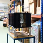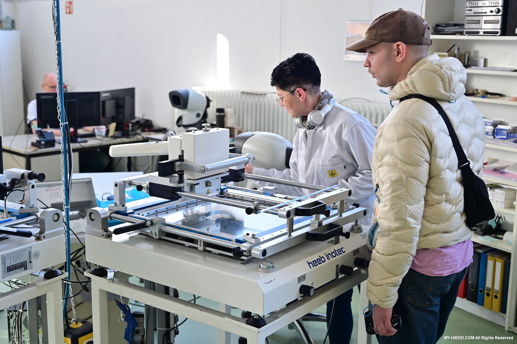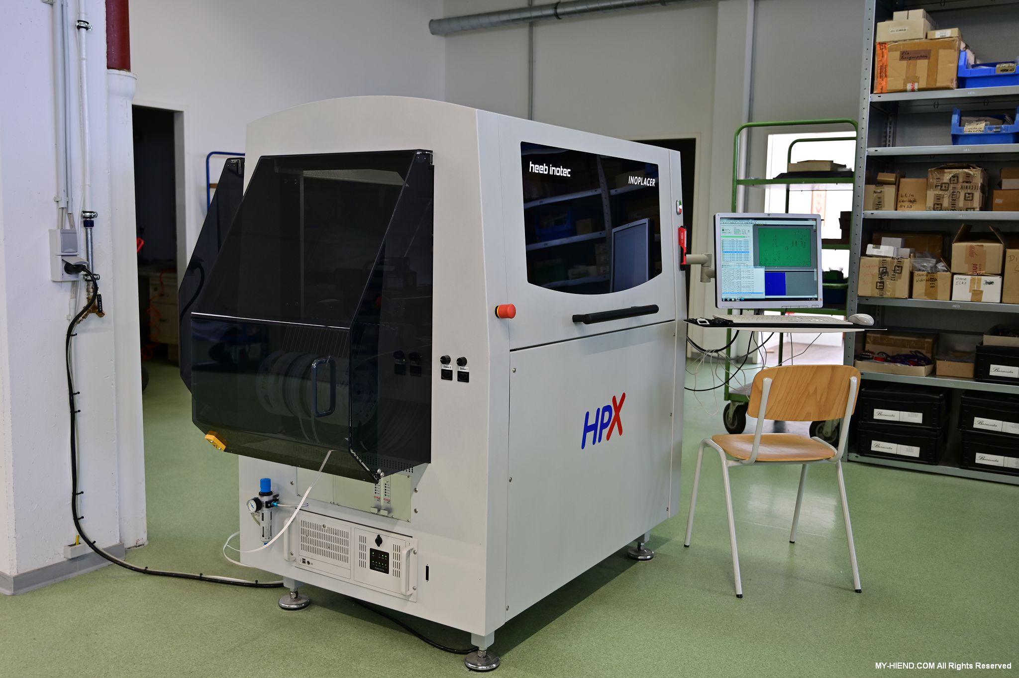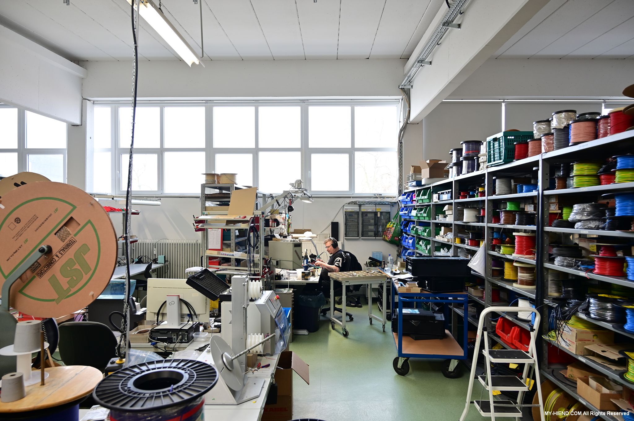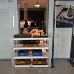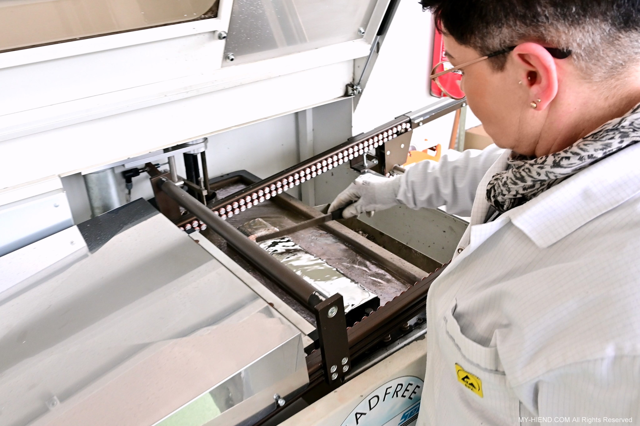 辦公區域接著我們進入總部一樓的生產區域,專門打造的音響室也在這裡。在這裡主要從事組裝生產、品管測試、產品熟化、試聽、包裝與出貨等部份,另外還有維修部門。重新整新後動線更為流暢,環境乾淨明亮,並增添了許多輔助的現代化機器設備來搬運或是組裝器材,畢竟Burmester的器材都具有一定的重量。這台由德國FEZER (Albert Fezer Maschinenfabrik GmbH)公司製造的真空搬運機 (Vacuum Lifter),這些真空搬運機並與預先安裝好在天花板的軌道結合,如此一來器材就可以在工廠內輕鬆的移動。
