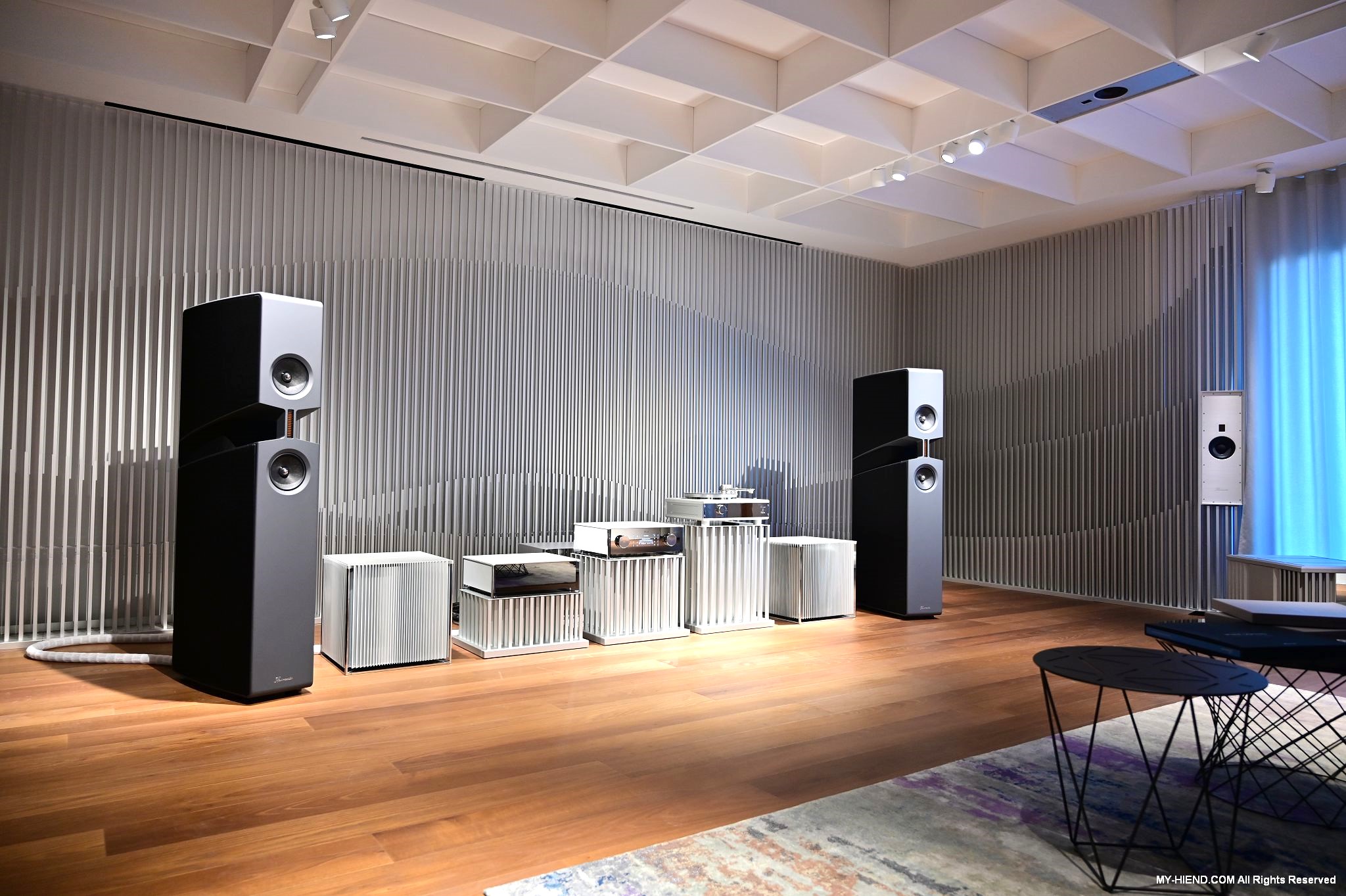 參訪最後就是Burmester全新打造的音響室了,兩聲道部份已經完成,多聲道部份還在建構當中,兩聲道的器材應該會隨情況進行更換,例如有新的產品之類的,到訪時主要的器材基本上是慕尼黑音響展上剛發表的新產品: 249前級(已裝數位串流模組)、259單聲道後級、175黑膠唱盤(新的257還在做最後定案)及BX100喇叭,Phillipe播放了幾首不同類型的音樂,聲音極好!
