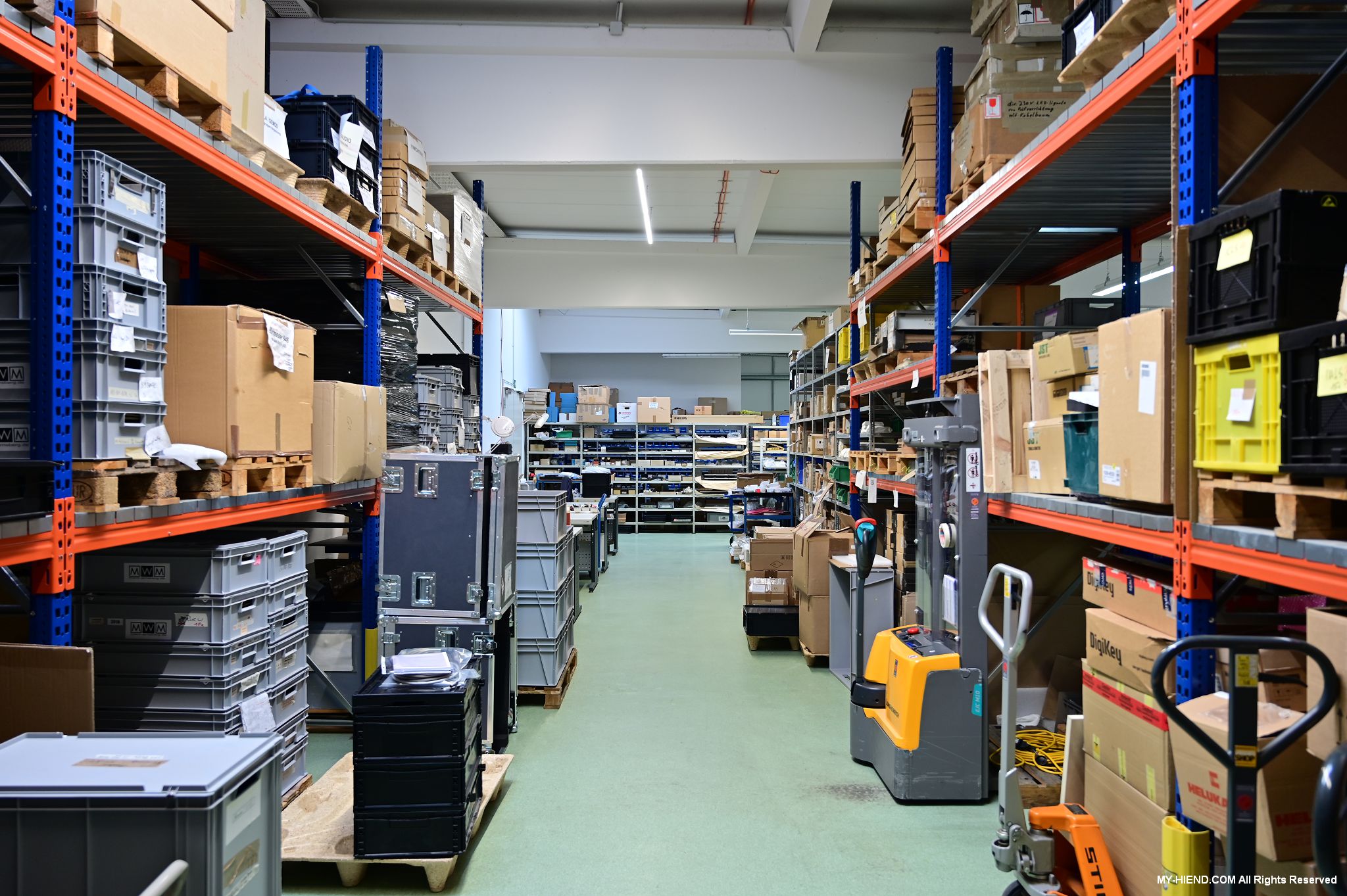 BLB共有將近9,500種元件在庫,很大部分都來自鄰近的供應商,整體有超過95%的零組件採購自德國,這些元件在運送到BLB後會先進行品管作業,然後登記到電腦系統,接著才會存放到倉儲架上。