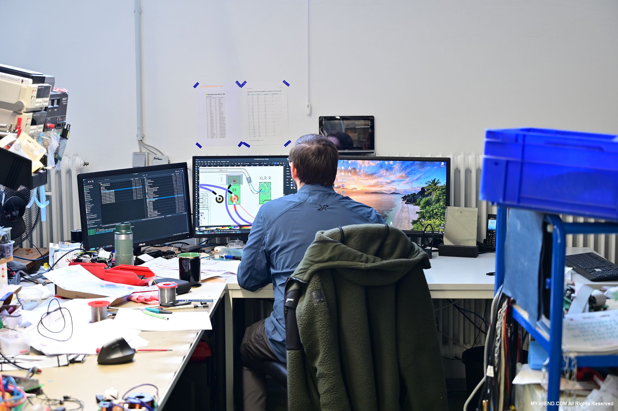 這面檔案牆保留Burmester從1977年創業至今每一個產品的原始設計資料,如線路、機械箱體設計,這裡也是Burmester研發或技術人員會來找尋資料的地方。