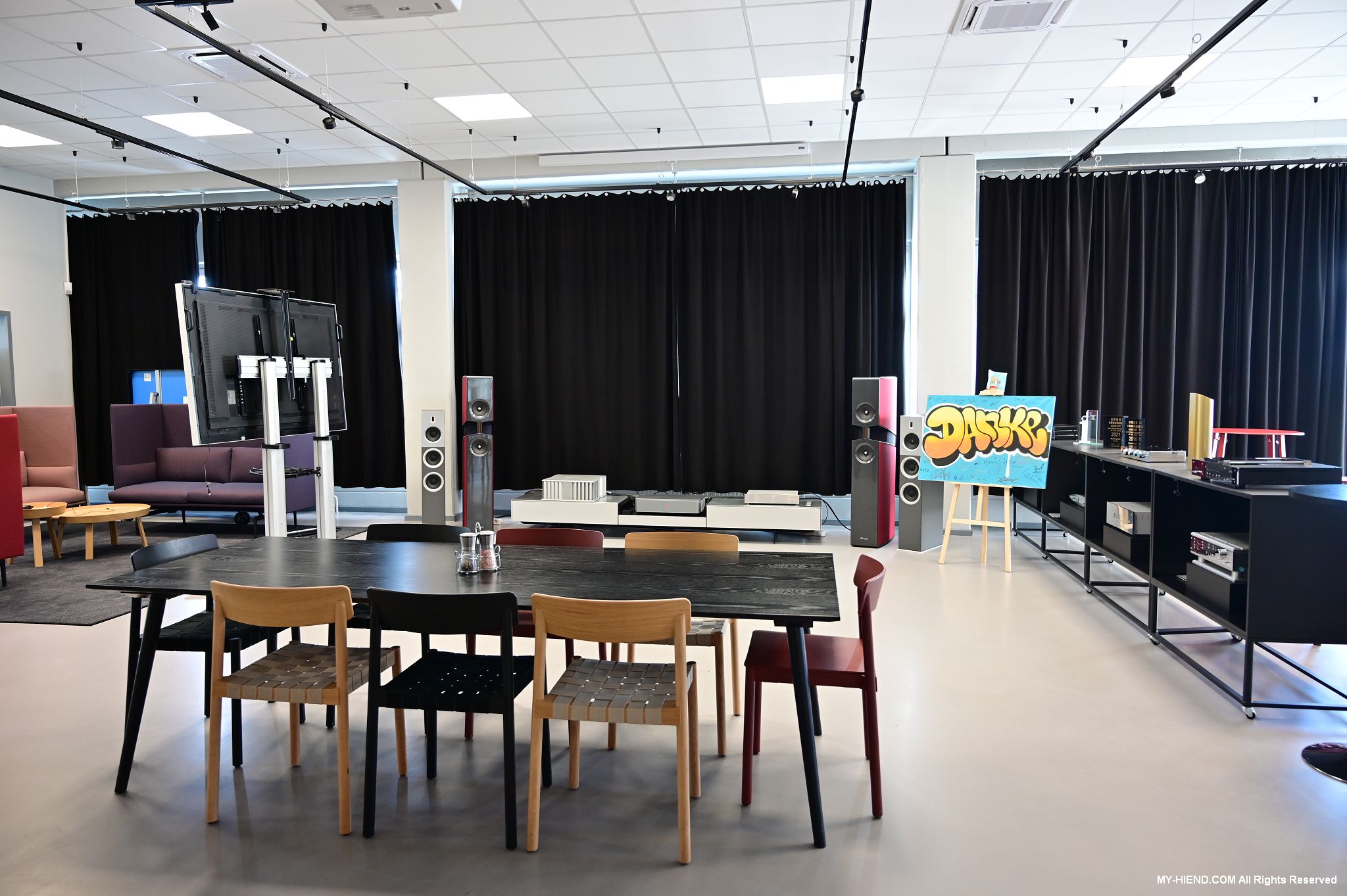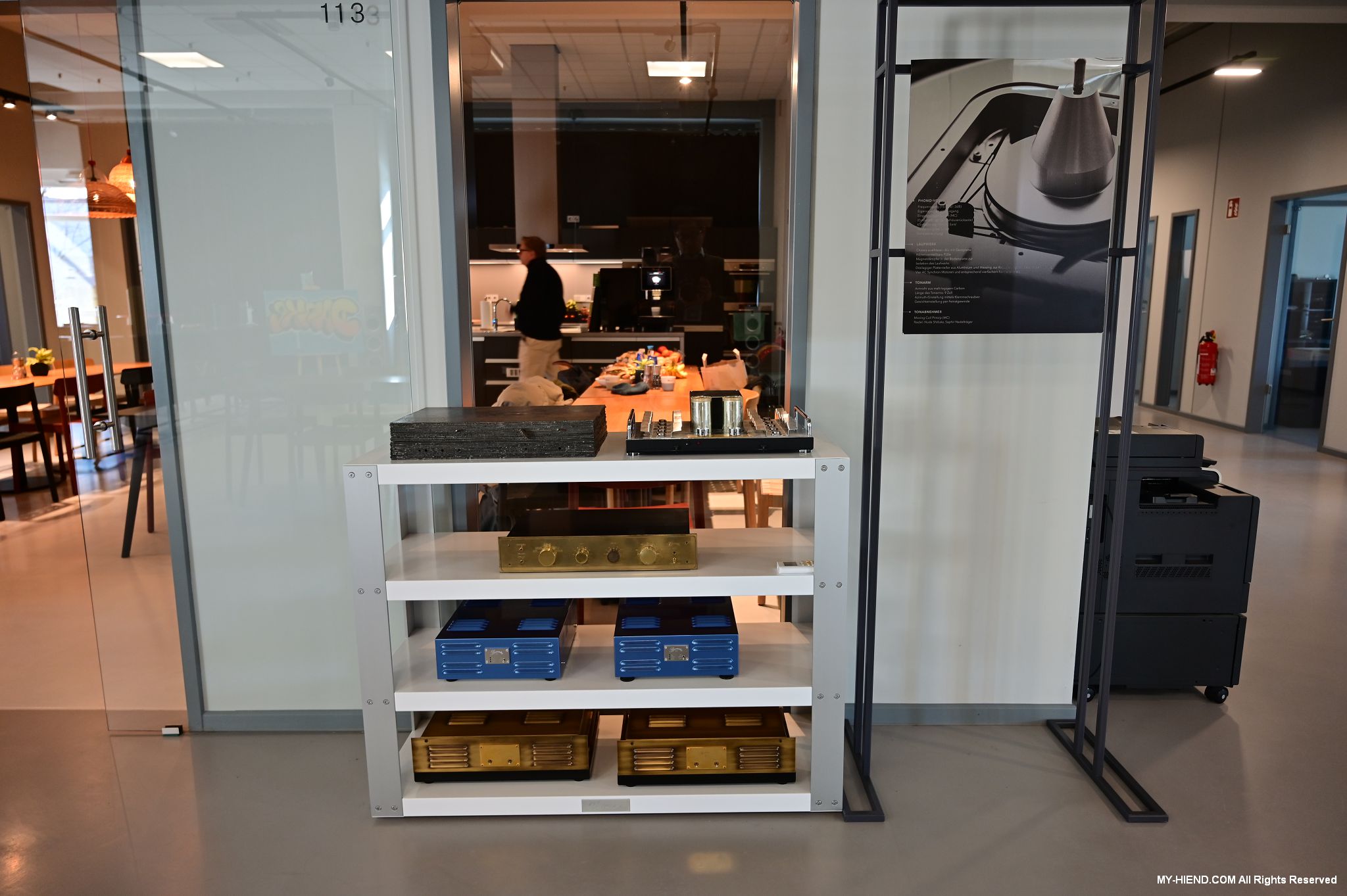Burmester的員工餐廳,相當漂亮舒適,也有一個開放的音響系統,我來之前據說是旗艦BC350喇叭,現在是最新的BX100喇叭,這裡也展示了一些Burmester經典產品,還有一些是概念型號並沒有正式生產,我也趁機在這喝了一杯咖啡提神。