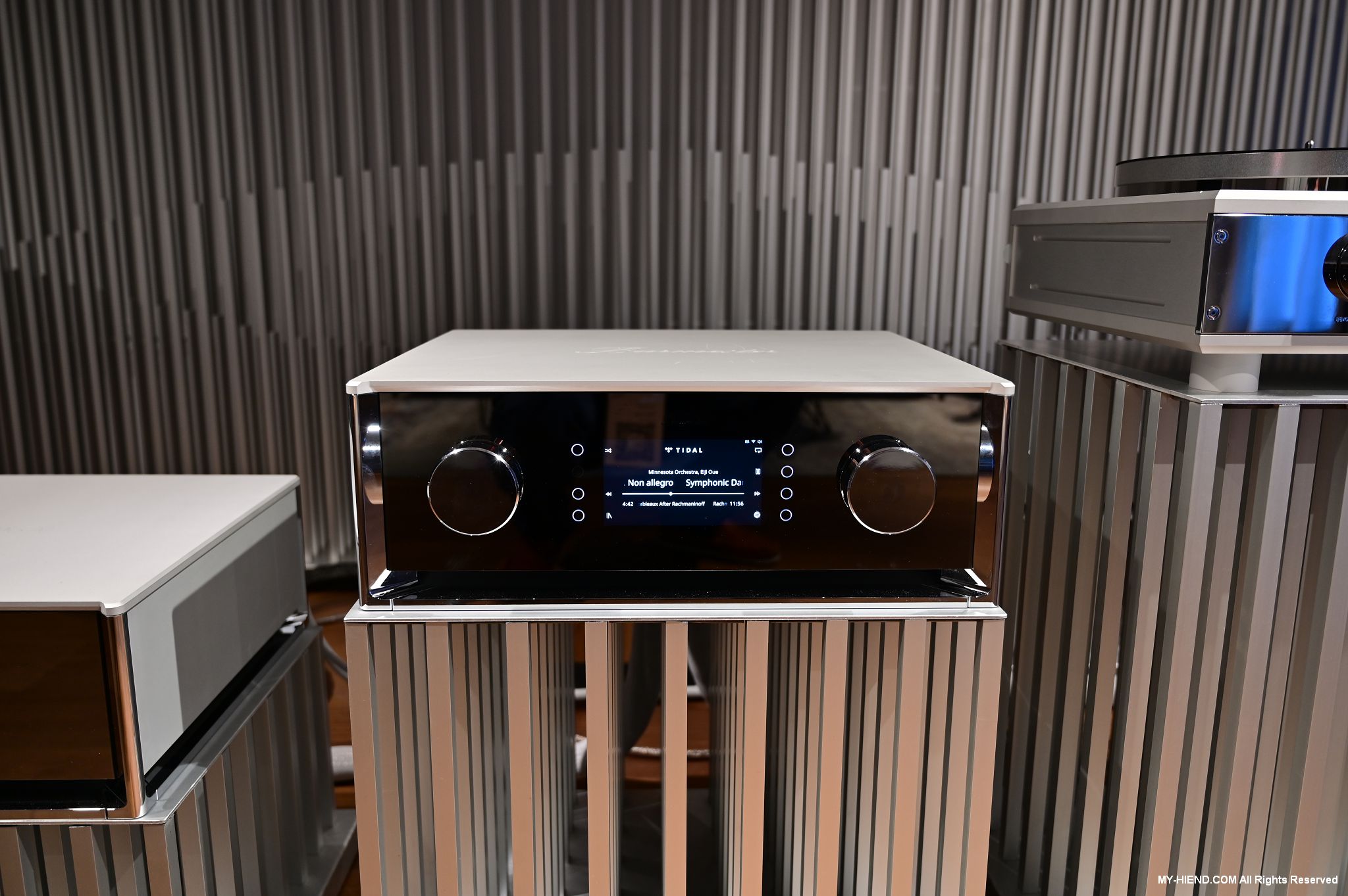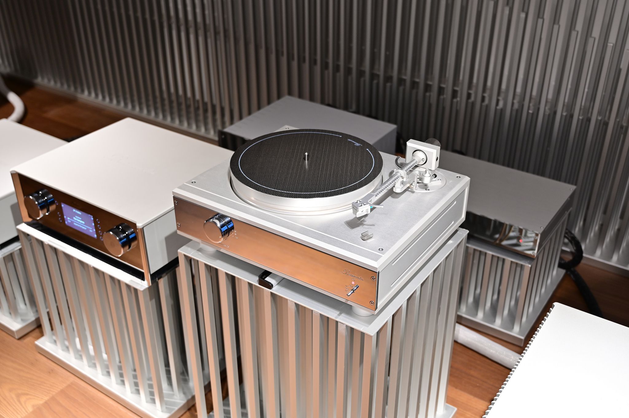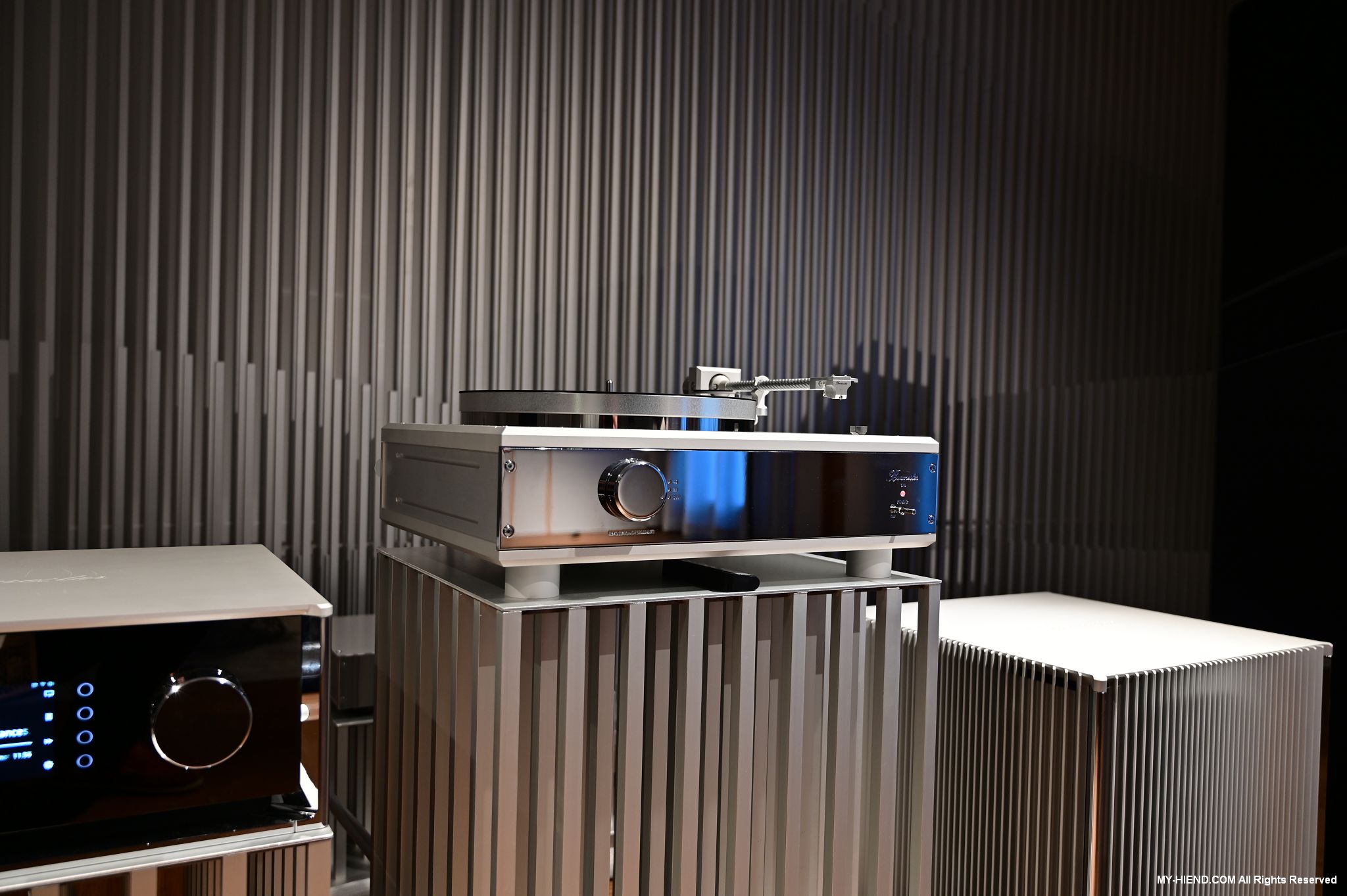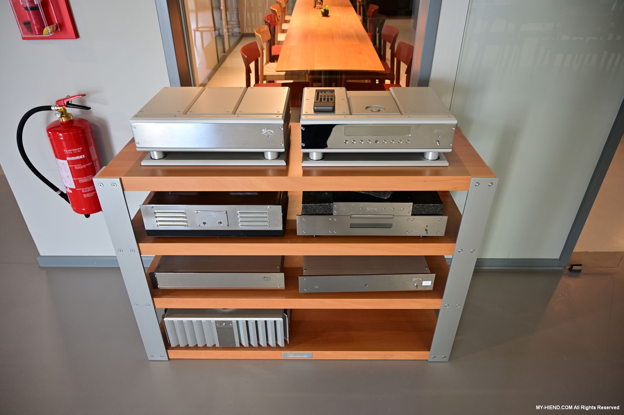 Burmester創業代表作777前級,與當時Dieter Burmester先生使用的QUAD系統保存在一起,777原本只有幾台,只是Dieter Burmester先生自己跟幾個朋友使用,結果一傳十、十傳百,就此一發不可收拾。