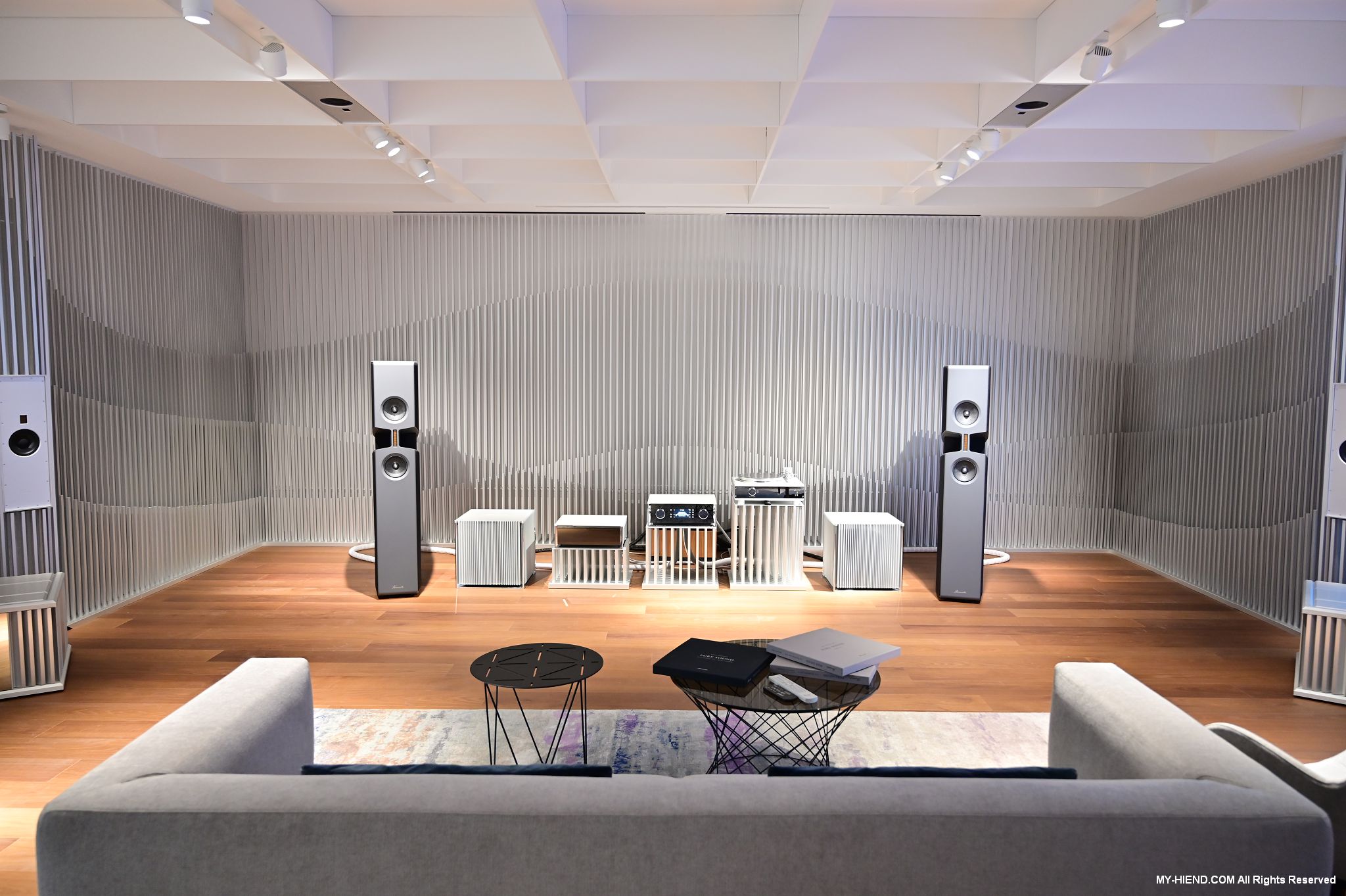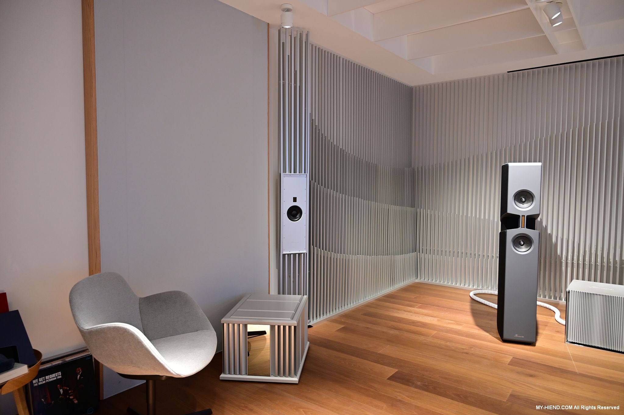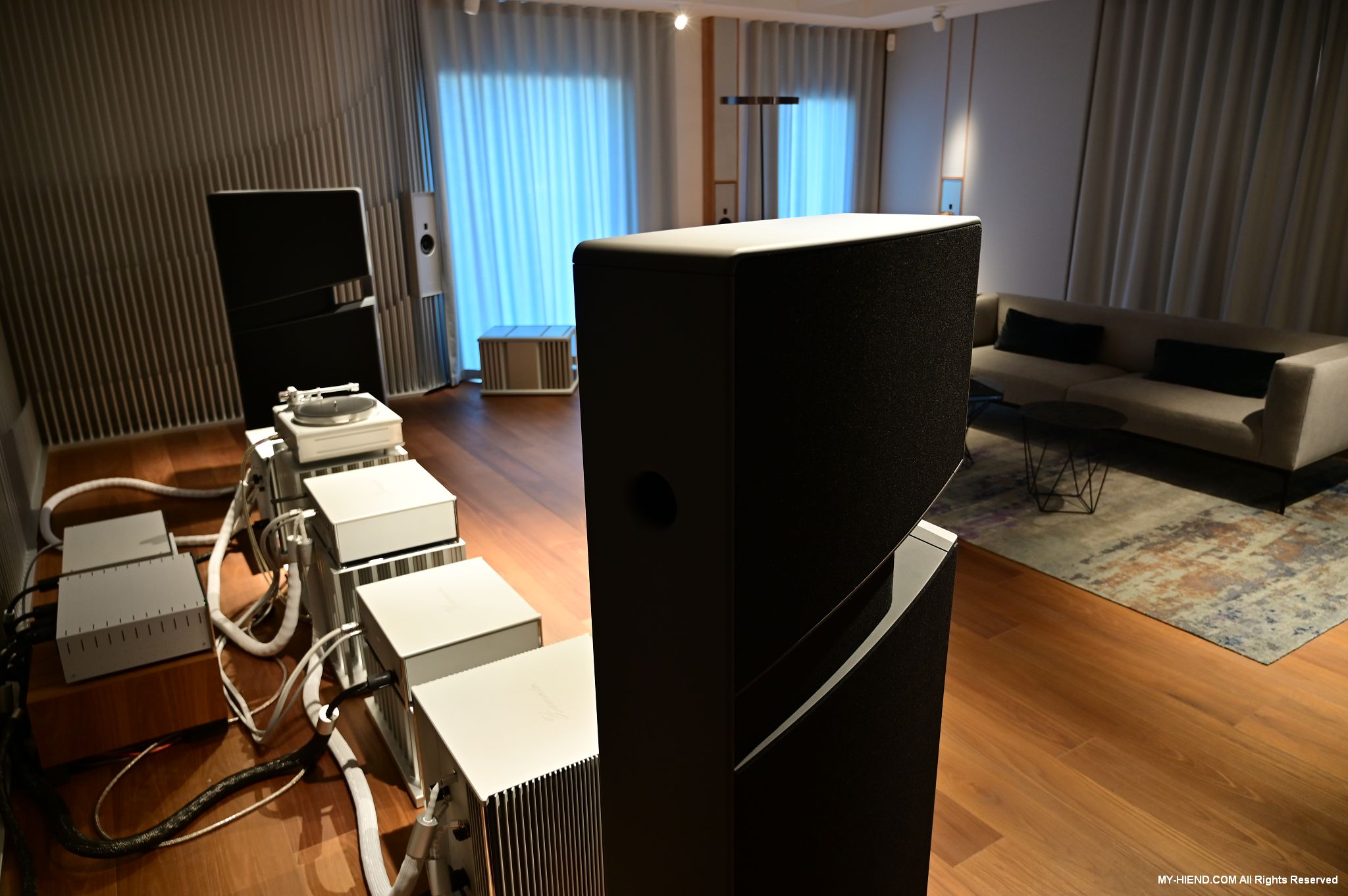 參訪最後就是Burmester全新打造的音響室了,兩聲道部份已經完成,多聲道部份還在建構當中,兩聲道的器材應該會隨情況進行更換,例如有新的產品之類的,到訪時主要的器材基本上是慕尼黑音響展上剛發表的新產品: 249前級(已裝數位串流模組)、259單聲道後級、175黑膠唱盤(新的257還在做最後定案)及BX100喇叭,Phillipe播放了幾首不同類型的音樂,聲音極好!