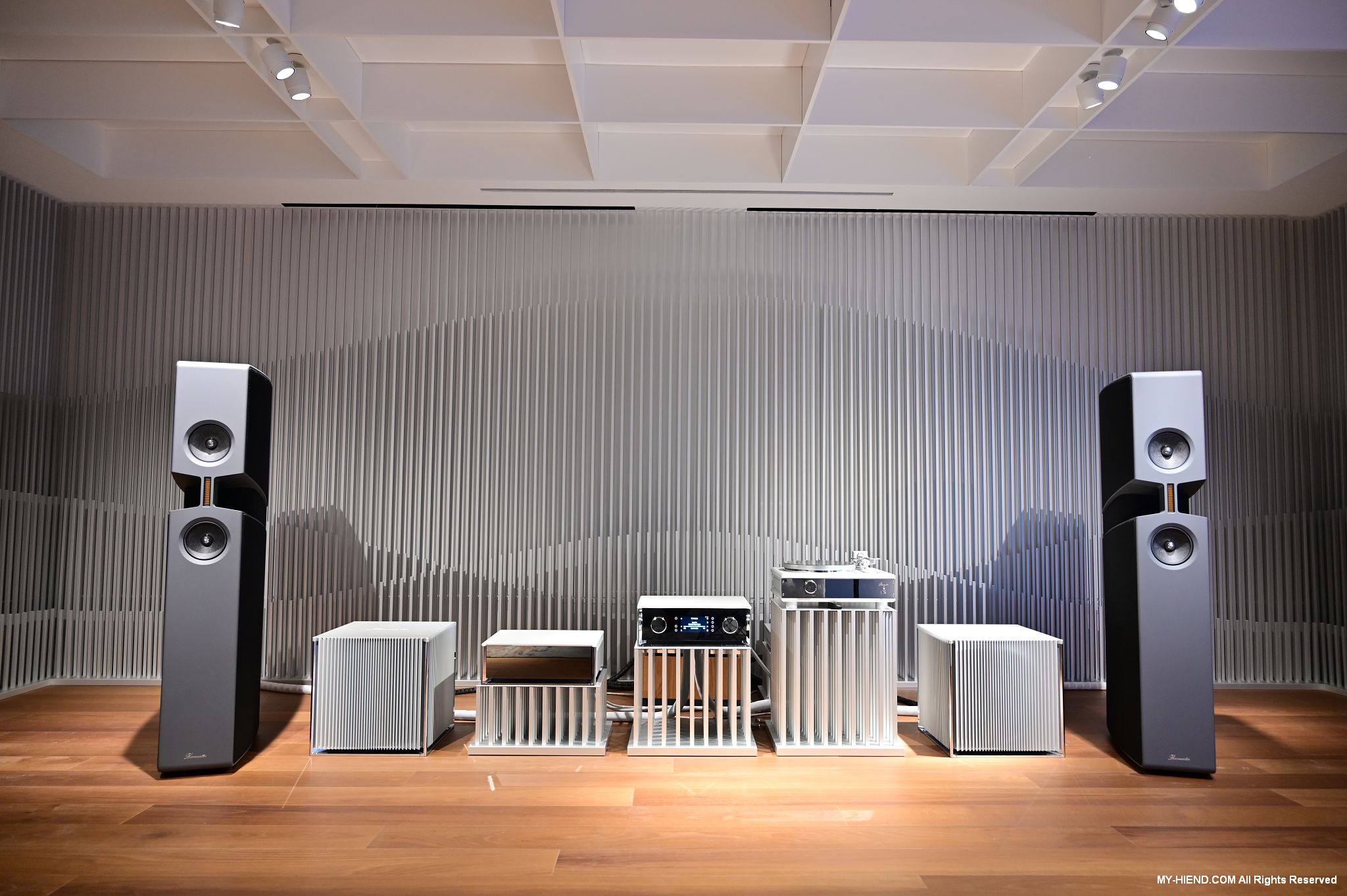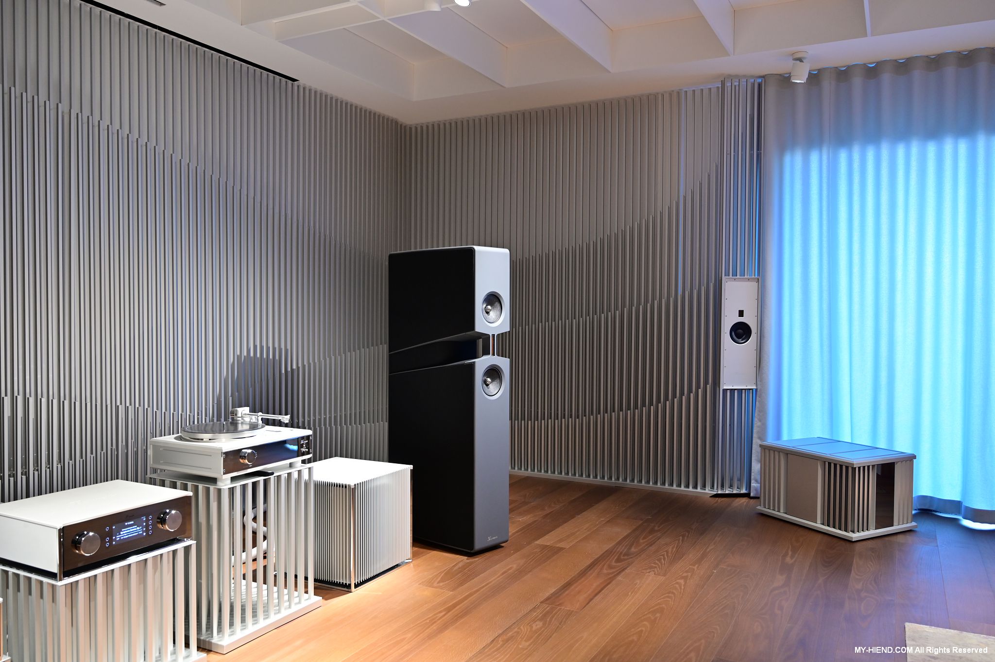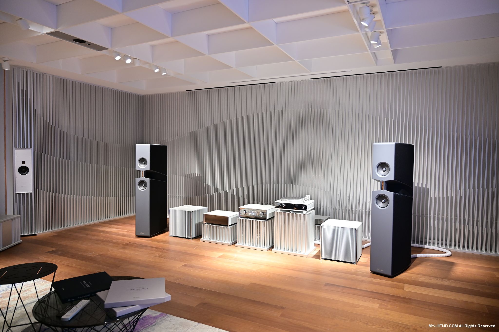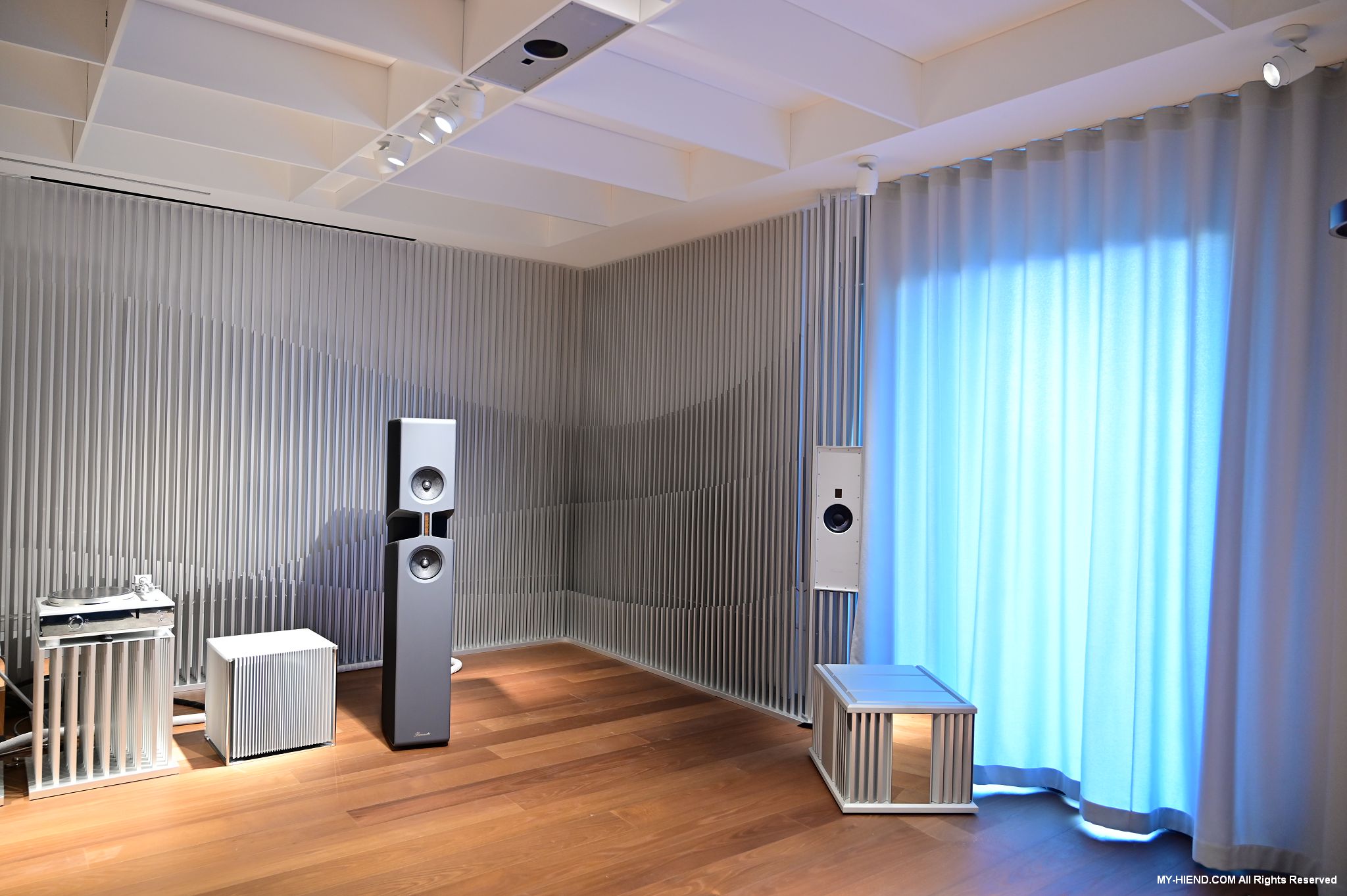 參訪最後就是Burmester全新打造的音響室了,兩聲道部份已經完成,多聲道部份還在建構當中,兩聲道的器材應該會隨情況進行更換,例如有新的產品之類的,到訪時主要的器材基本上是慕尼黑音響展上剛發表的新產品: 249前級(已裝數位串流模組)、259單聲道後級、175黑膠唱盤(新的257還在做最後定案)及BX100喇叭,Phillipe播放了幾首不同類型的音樂,聲音極好!