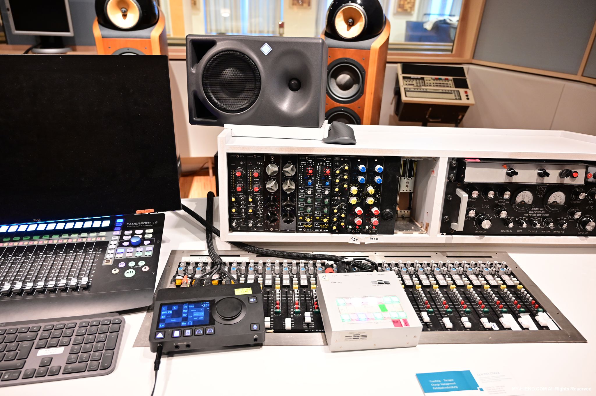在前往機場前,Burmester特地安排了與他們合作關係相當密切的Emil Berliner Studio(EBS)唱片製作公司,EBS可說是大有來頭,是全球最頂尖且歷史悠久的錄音工作室,公司以留聲機與黑膠唱片發明人Emil Berliner命名,EBS前身原本為Deutsche Grammophon(DG)的錄音部門,2008年獨立於DG後於2010年搬到柏林現在這個地方,跟傳奇的Hansa Studios、Meistersaal音樂廳就位於同一棟建築內。EMS擁有多頂級的錄音與混音設備,黑膠唱片直刻錄音(Direct-to-Disc)、漆盤刻片 (Lacquer Cutting),也有專門的Dolby Atmos混音與母帶工作室。我們也見到了EMS負責人Rainer Maillard先生,Rainer為業界傳奇大師,1990年加入DG擔任錄音師,曾獲得四座葛萊美獎,專精於古典音樂錄音與「直刻錄音」(Direct-to-Disc)技術。近期進行的DG、Decca、Philips的母帶復刻系列(The Original Source, Decca Pure Analogue),由Rainer親自操刀,將早期的原始母帶以純類比方式重新混音並刻片,限量發行。雖然只是短暫的停留,卻已經令人印象深刻難忘。