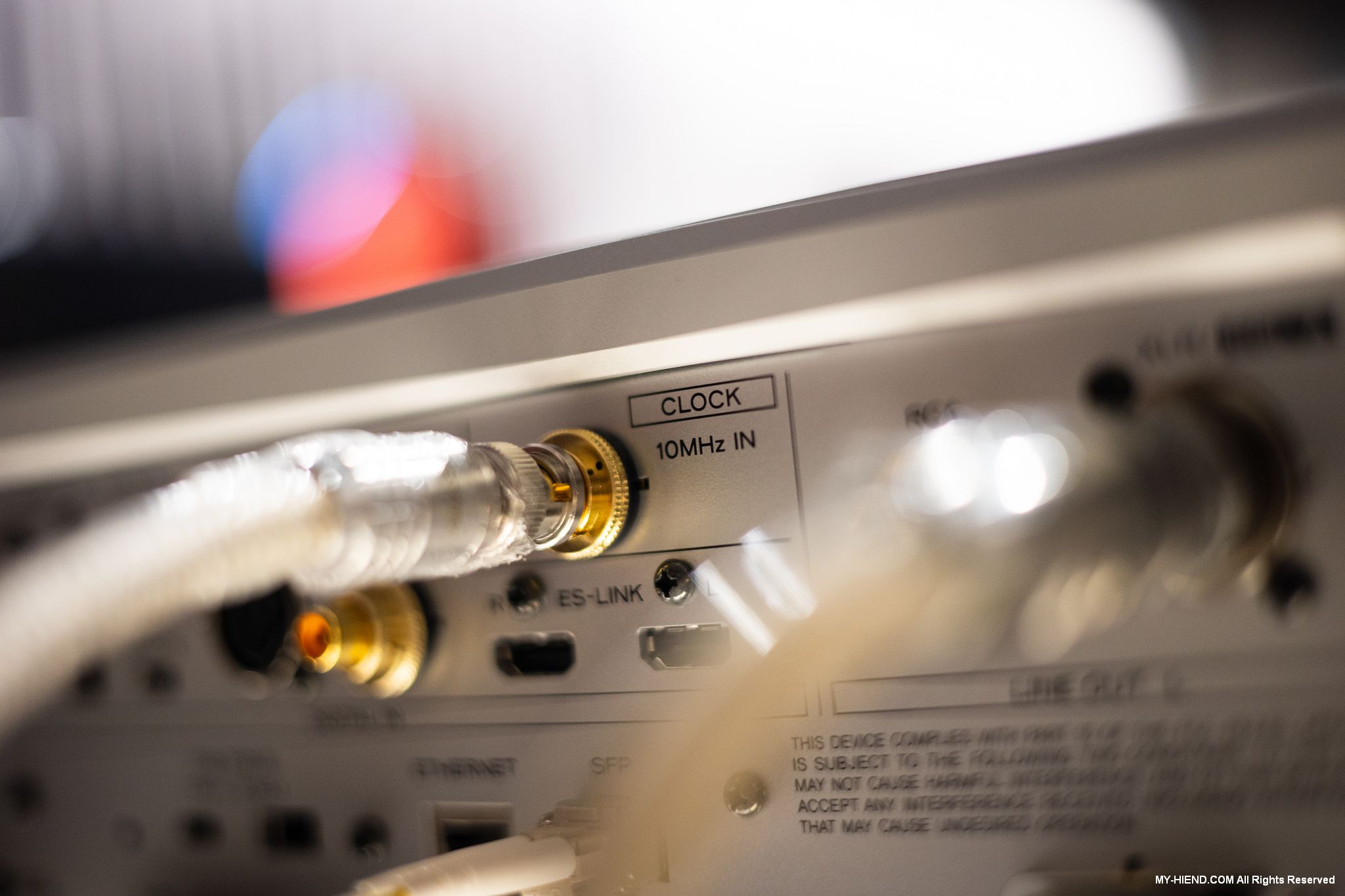 Grandioso N1的背面一覽,比較特別的是除了RF45的網路介面外,還有SFP光纖,另外還有可外接電源之DC IN(左右聲道獨立)。Esoteric專有的ES-Link Analog電流傳輸系統來連接擴大機,與傳統的電壓傳輸相比,它可傳輸約 100 倍的電流,從而將音樂的全部能量傳遞至放大器,不受音源和放大器之間互連線阻抗的影響。