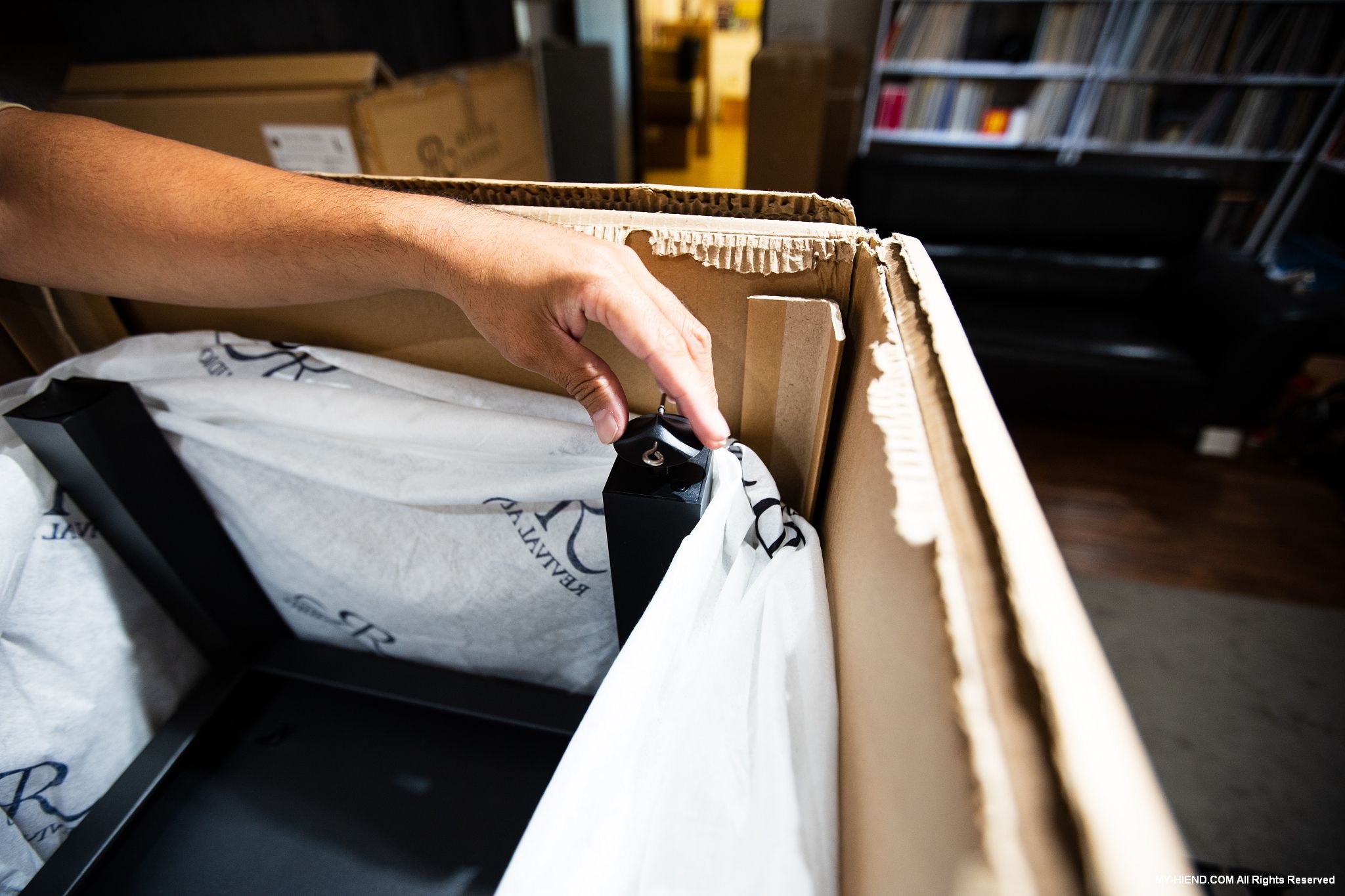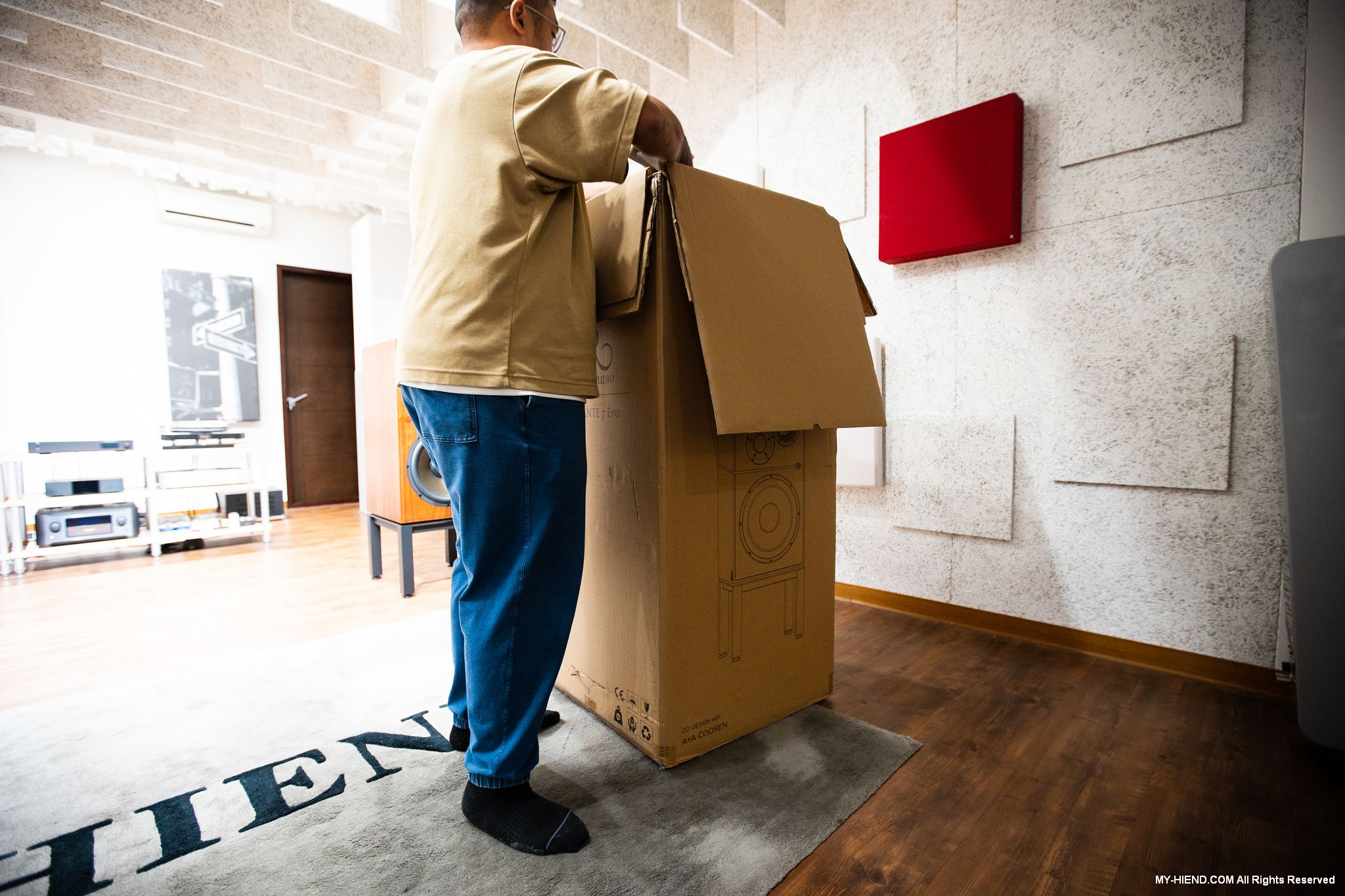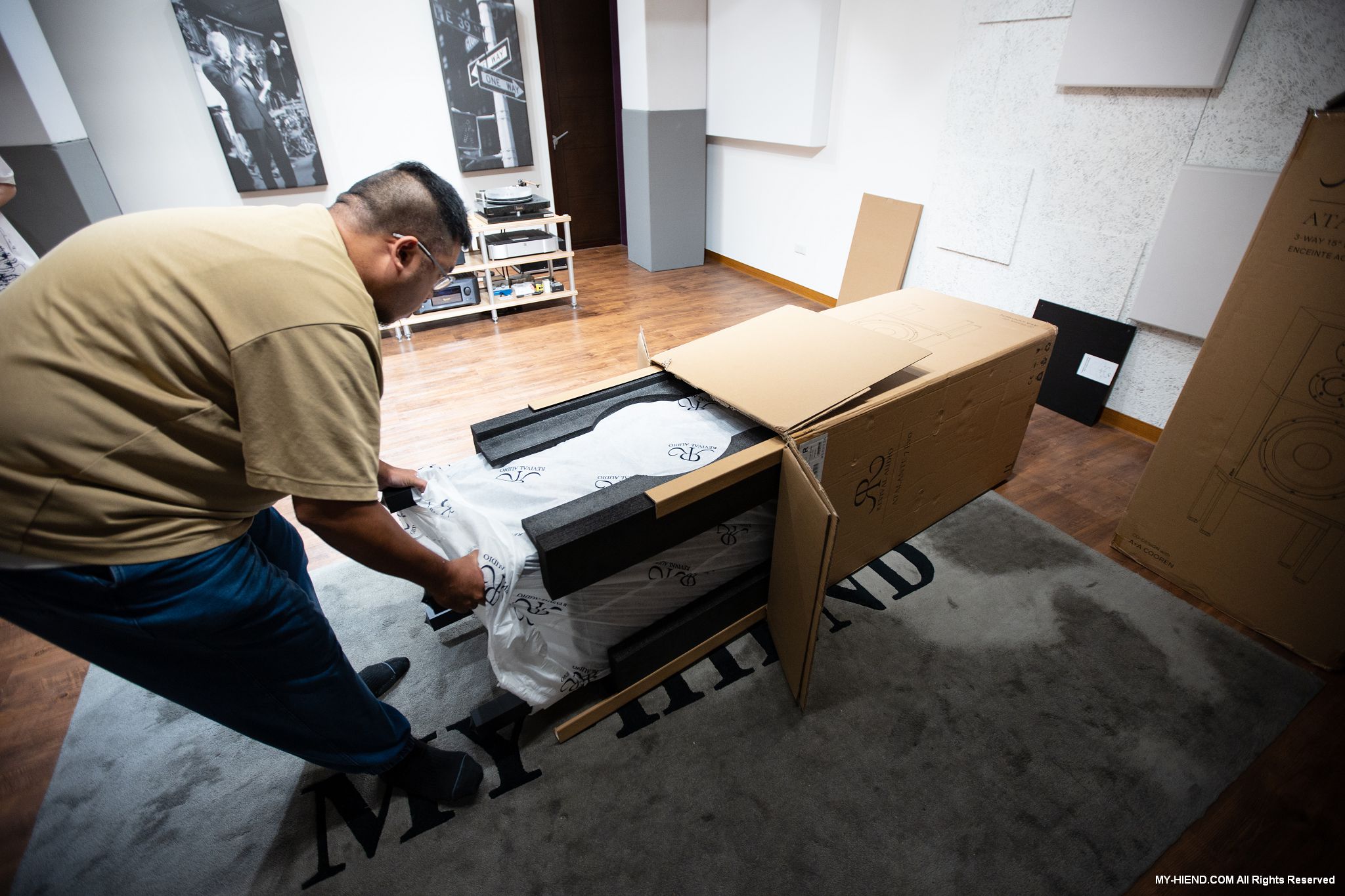 ATALANTE 7 Évo喇叭出廠時標準即配有喇叭架了,左右喇叭各一大箱,由於非常大且非常重,開箱時還特別請代理商協助