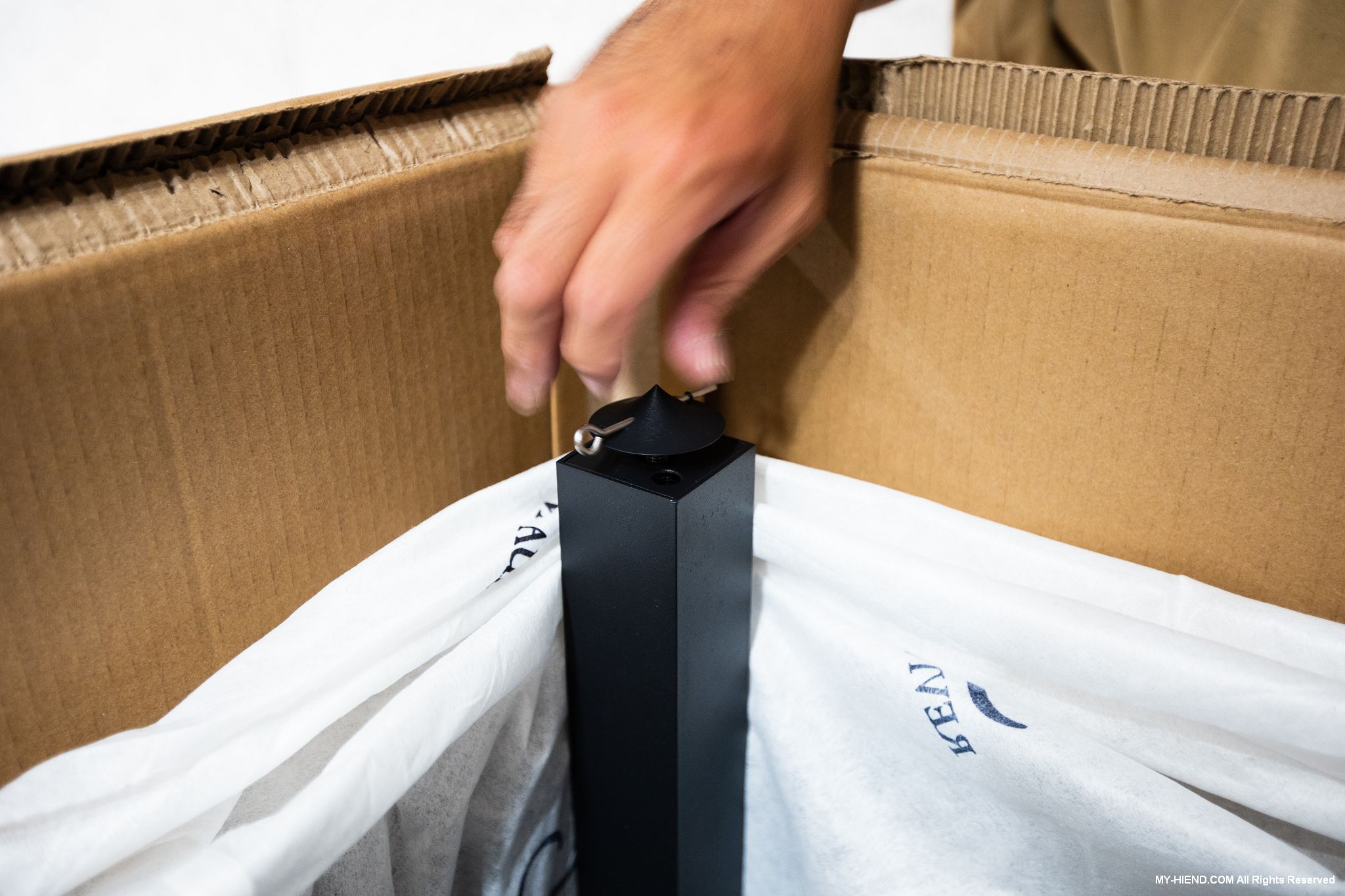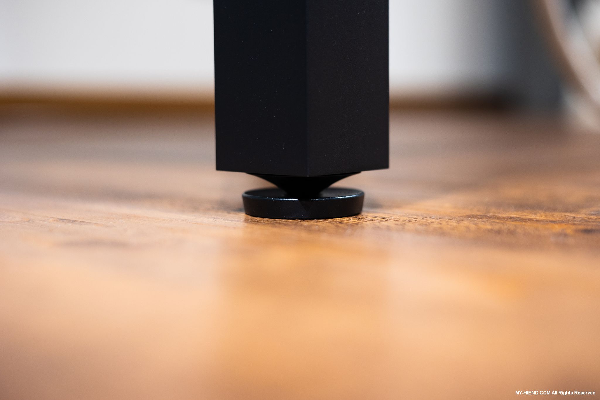 Atalante 7 Évo的出廠設定包含金屬腳架,並且是安裝在喇叭後包裝出貨,兩者間以4根長螺絲從喇叭底部鎖緊固定,同時喇叭還有4個角錐頂著喇叭腳架。金屬腳架的底部也有角錐以及原廠墊片可以使用。依照擺放高度而言,Atalante 7 Évo加上喇叭腳架相當通用,中音單體中心離地約92公分,高音單體離地約98公分,與一般人耳聆聽高度相當。如果用家有其他高度需求,也能夠將喇叭腳架卸掉,因為喇叭底部也有4個角錐,因此也可以擺放在任何平面上。喇叭重量並不輕,單支整體有67公斤,而且體積大不容易抱,開箱安裝或移動時一定要有兩人以上才安全。