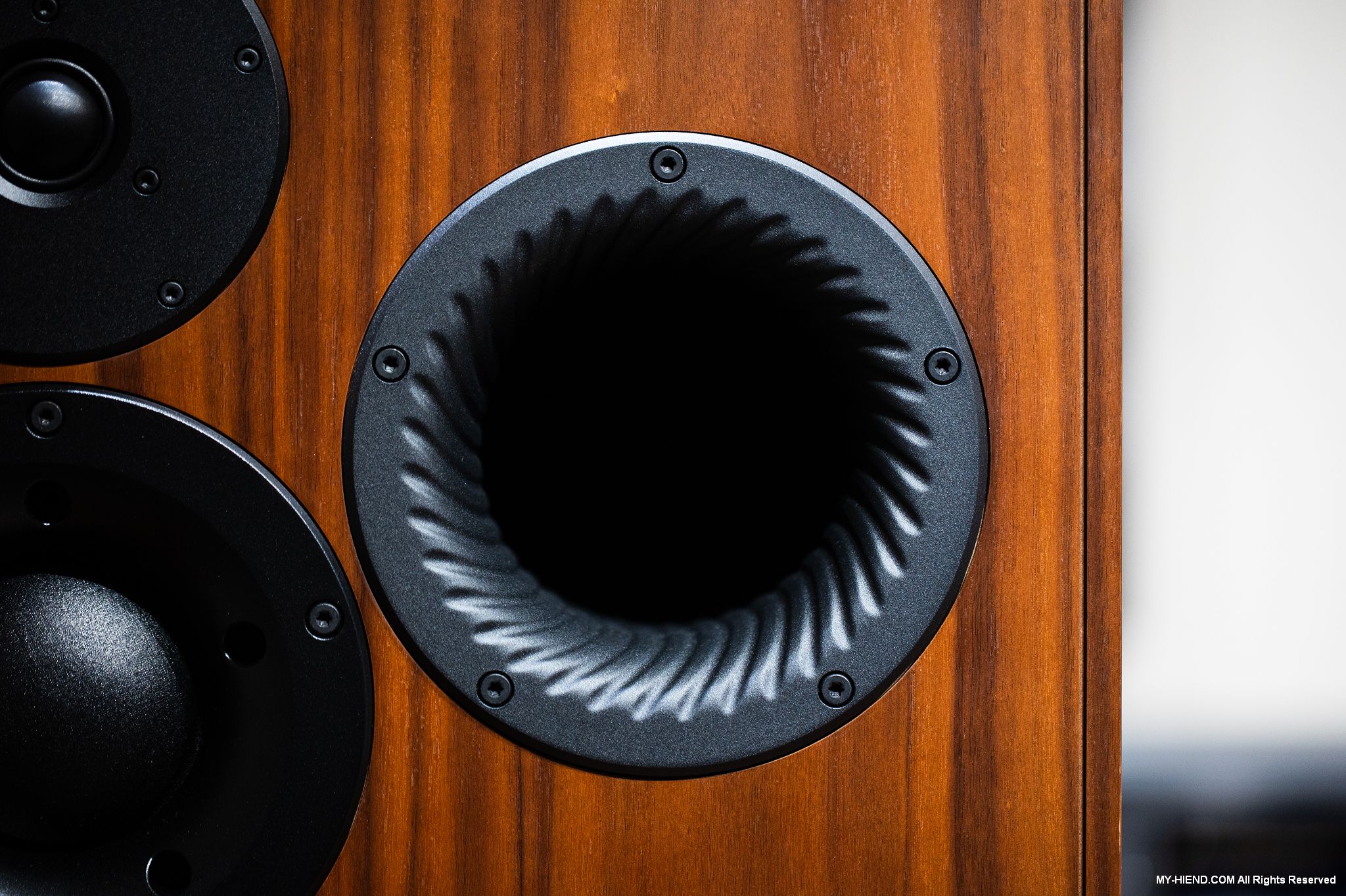 AeroVex™低音反射孔,全鋁合金製,經過數百小時的模擬測試,這種特殊的波導設計可減少湍流,並將倒相孔雜訊降低 94% 以上