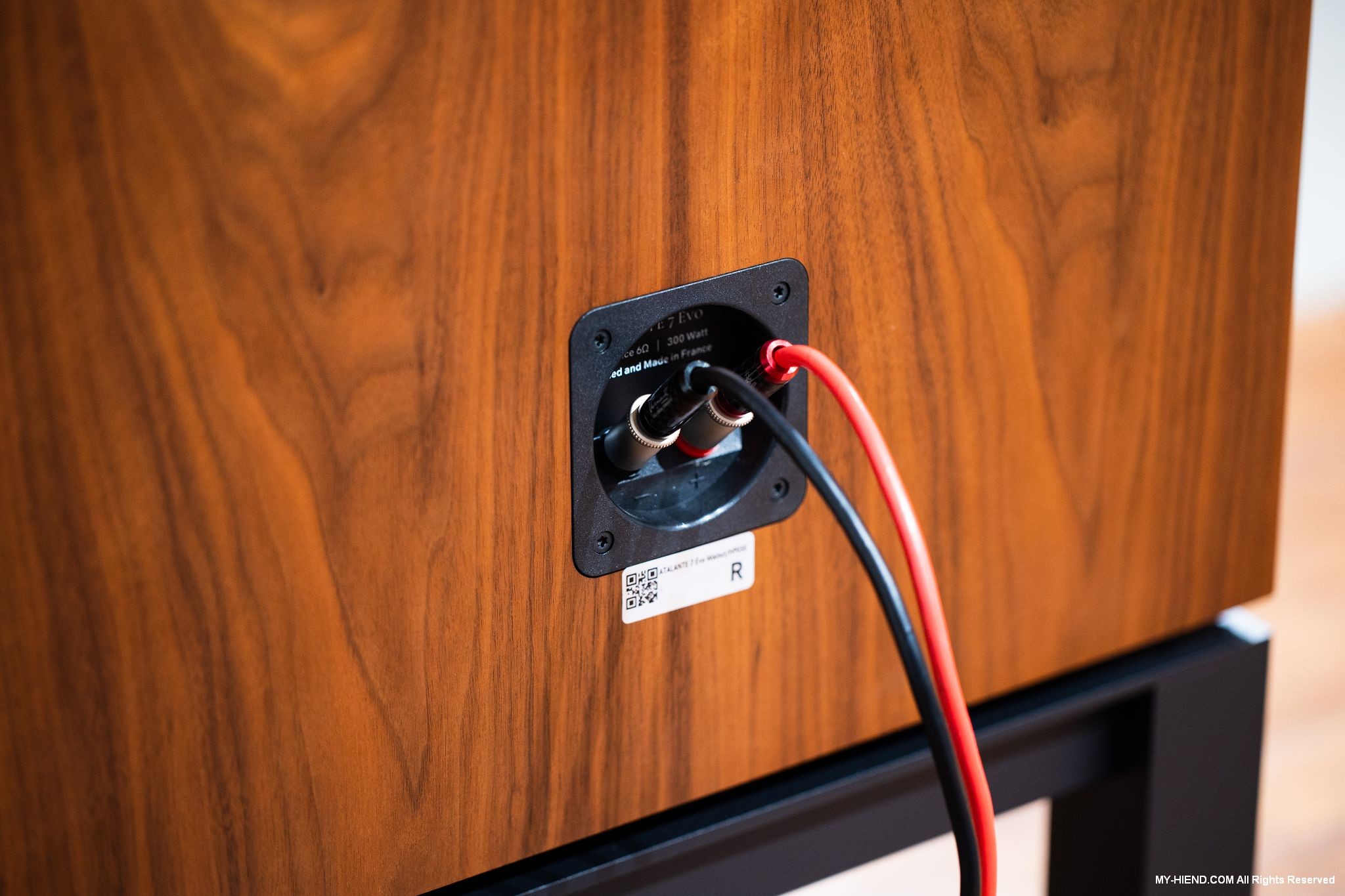 反射孔移至前方後,後面就只有喇叭輸入端子,其採用Single-Wiring設計,上面有標註R右聲道或是L左聲道,記得要擺對,若忘記或貼紙不見了就上官網對一下擺放方式