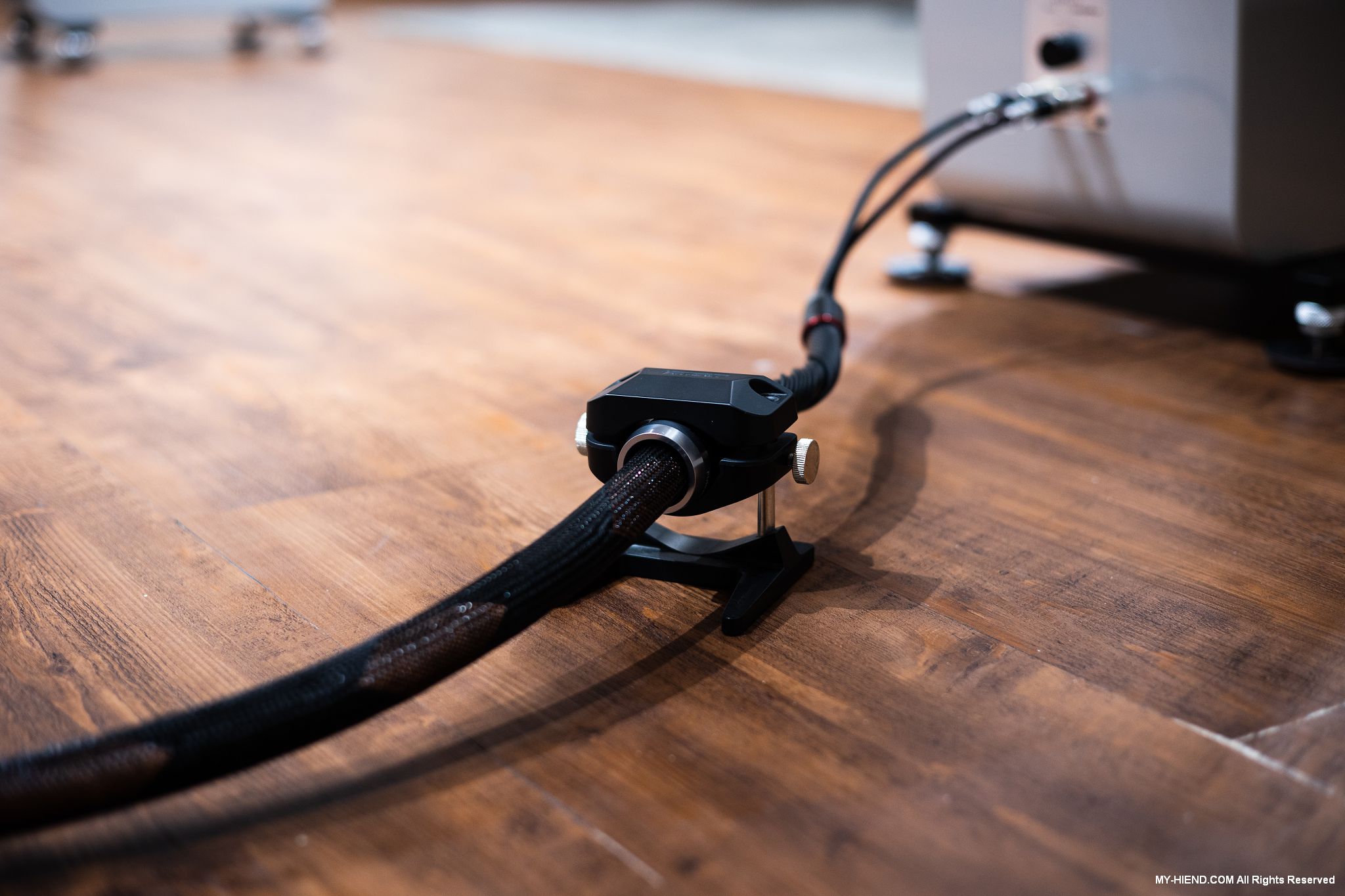 Furutech的線身阻尼環,共有4層,使用NCF與碳纖維、無磁不鏽鋼、航鈦鋁合金等材質所製成,內有固定線材之結構消除機械震動。上面有一個箭頭為方向性,需指向喇叭。
