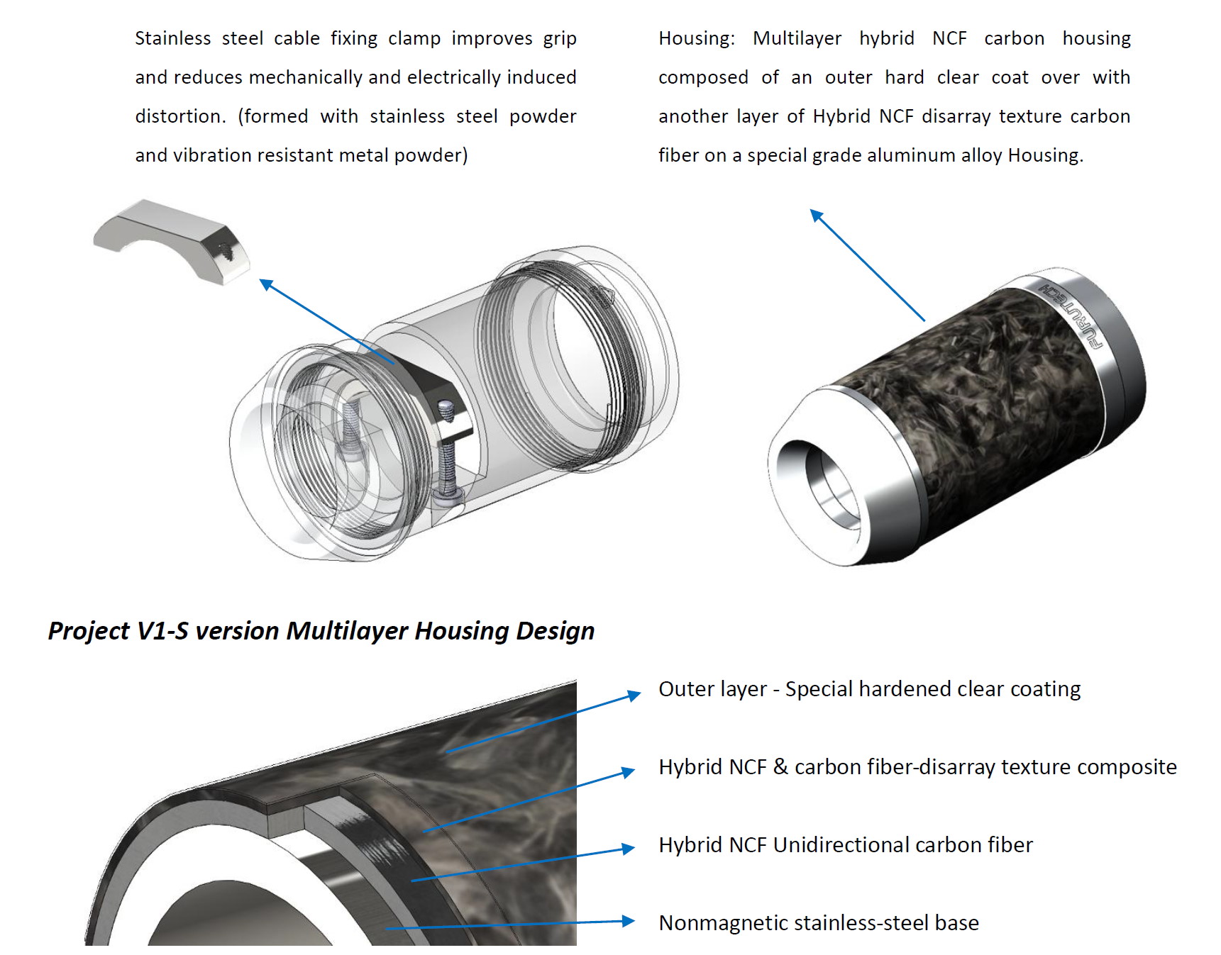 Project-V1-S的線材結構圖來看,Furutech在線材設計與生產的實力更是驚人,其總共分為12層,每一層都分屬不同的用料、設計與作用,這些結構與材質可不是隨便決定的,每一個細節都經過Furutech的不斷嘗試確定能有效後才會定案,包括導體的絞繞方向都會考究,只要有用過Furutech線材的人幾乎都會有一種感覺,聲音表現明顯地提升了。