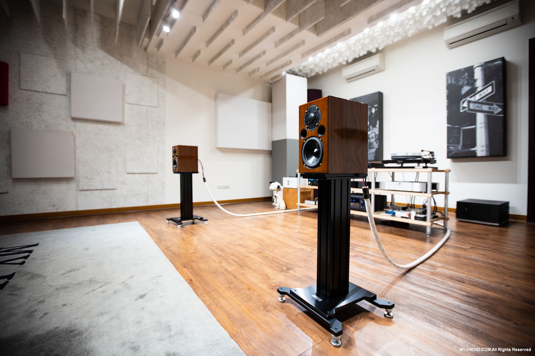 箱體外面經過十層打磨,內部採用了AE的RSC(Resonance Suppression Composite)材料,與旗艦Corinium相同,並結合HDF高密度複合板與Bitumen瀝青阻尼,大幅提高了箱體的剛性與降低箱體共振與消除多餘的反射駐波。為AE1 40th找一對合適的腳架是最能完全發揮的聆聽方式。