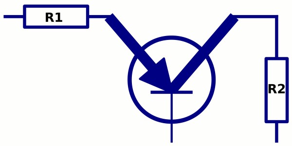 Now let us have a look at a simplified schematic of our AMP M1 or AMP S1 input circuit (picture AMP-CI): The input signal from a source like our DAC1 is flowing through resistor R1 (in this case needed to define the current) and through E and C of the transistor, terminated by resistor R2. The current is same through R1 like through E and C of the transistor and as well through R2. But the voltage depends on the value of R1 and R2: If R1 and R2 are same, the voltage at the input of R1 and the output (C) of the transistor are same. If R2 is only 1/10th of R1, the voltage is 1/10th as well, means an attenuation of 20dB. If R2 is 10 times higher than R1, the voltage is 10 times higher as well, means a gain or amplification of 20dB.