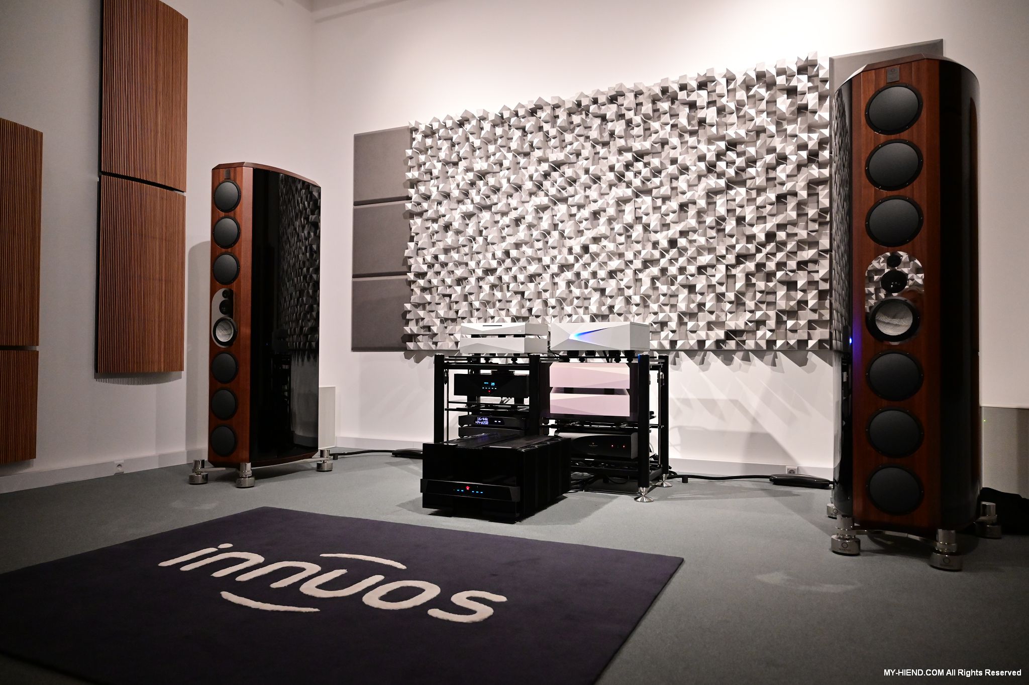 Nazaré Flow可說是三件式中最為創新的設計,Flow與各個DAC廠商合作達成最完美的連接,其也負責Reclocking確保送出的訊號之正確性,內部電源也是專屬Flow使用,Flow也同步了來自DAC的時脈訊號,達成時脈一致,時基誤差及時間相位差達到最小。Nazaré Flow標準配備USB、I2S輸出,用家可選配要使用哪一個模組,例如MSB的ProISL,或是單AES/EBU、雙AES/EBU、SPDIF等。箱體的設計不單純好看而已,Nuno提到其花了很大的功夫在箱體設計上,包括震動的處理、EMI隔離、絕緣…等等。震動處理方面,innuos找到專門替F1方程式設計震動阻尼材料的TONEO(Meneta)公司,innuos將這種特殊材料運用在兩個地方,一個是箱體外層,因為很多震動干擾是來自外在環境,另個是內部線路上,包括電容、環形變壓器運作時都會有機械震動產生,透過使用這種特殊阻尼材料的運用可以將其消除。Nuno曾經自己比較兩套系統,一套沒有使用這種組尼材料,另一套有,結果有用組尼材料的系統背景明顯更黑、空間立體結象更為明確。