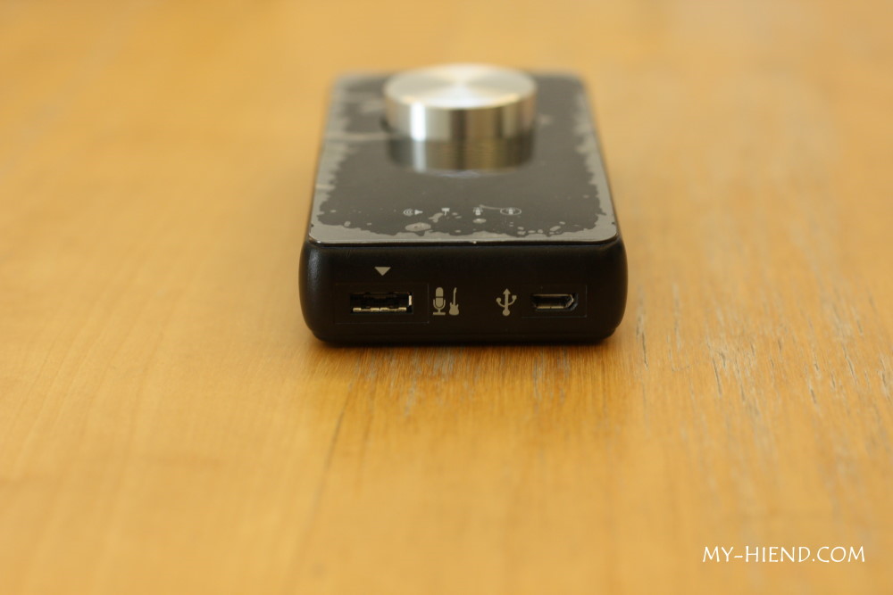 左邊接孔可連接外接排線再收錄樂器輸入,也可接上習慣使用的其他麥克風收音。右方為USB接孔可連接MAC電腦傳輸,也可透過電腦供電。