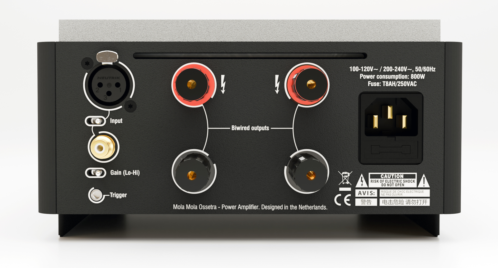 在電源供應上,Mola Mola Ossetra實現了顯著的超低底噪,同時提升了動態和持續輸出功率。結合擴⼤機輸出級⼤幅增強的電流能⼒,使這款擴⼤機幾乎能驅動任何負載。Mola Mola Ossetra是⼀款全橋式後級擴⼤機設計,全橋輸出使擴⼤機設計從輸入到輸出完全平衡。針對Mola Mola Ossetra,設計了全新的獨⽴A類增益級。使⽤這些新的增益級能夠重新調整整個擴⼤機的增益結構。這使得整個系統的噪⾳和失真表現達到卓越⽔平。
